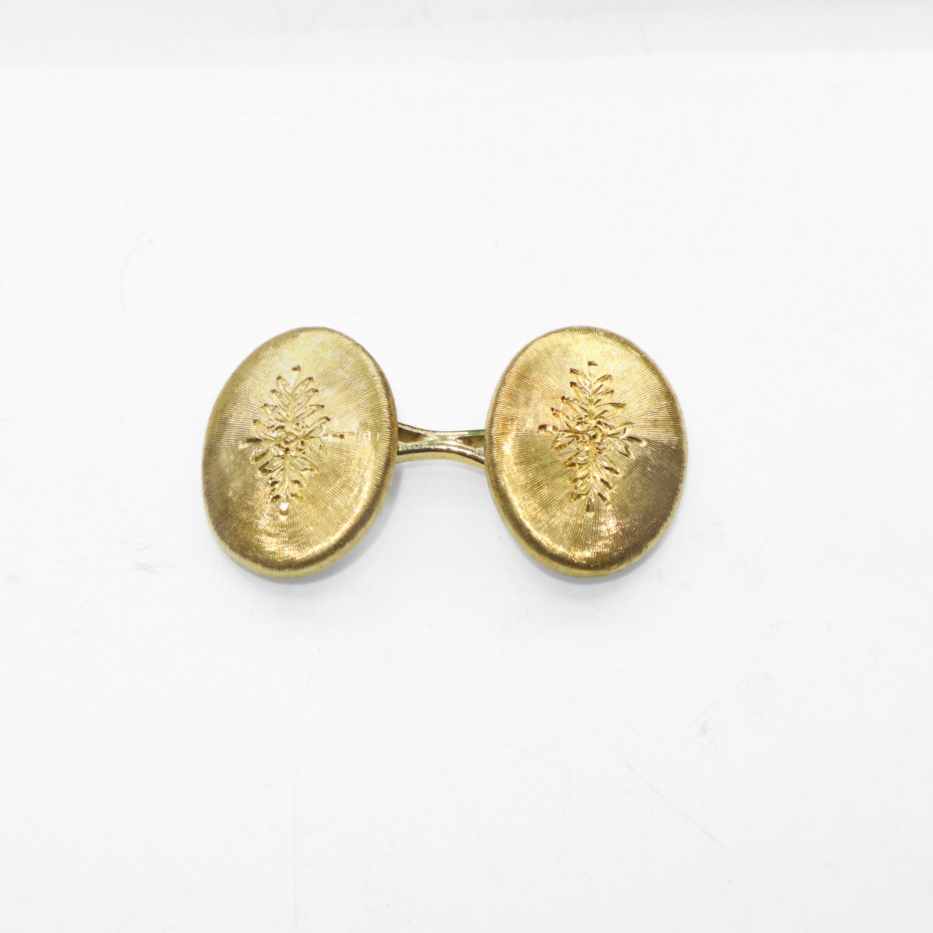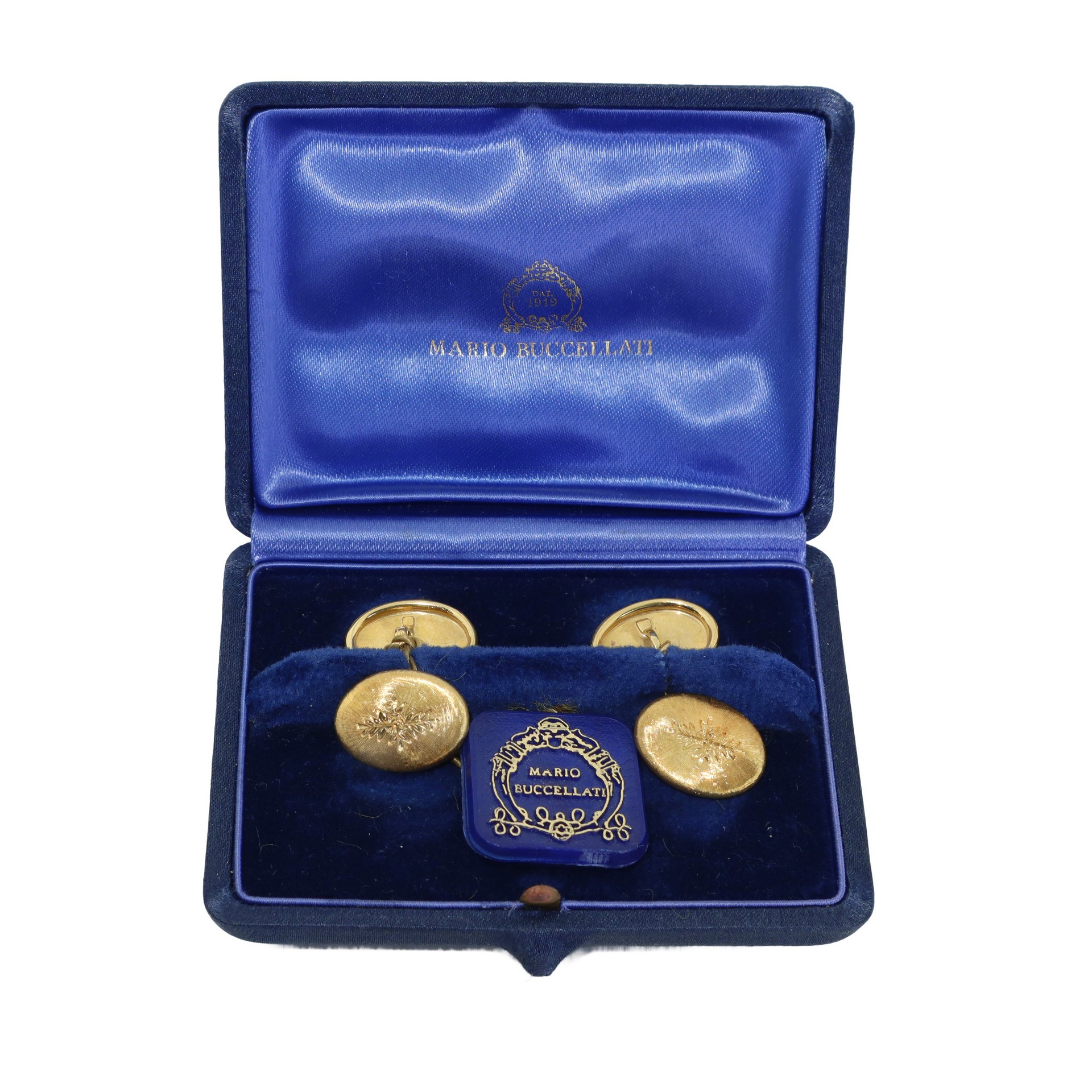 Mario Buccellati (1891 - 1965) - Coppia di polsini in oro giallo 18 ct con decoro centrale inciso gr. 10 Dotati di scatola