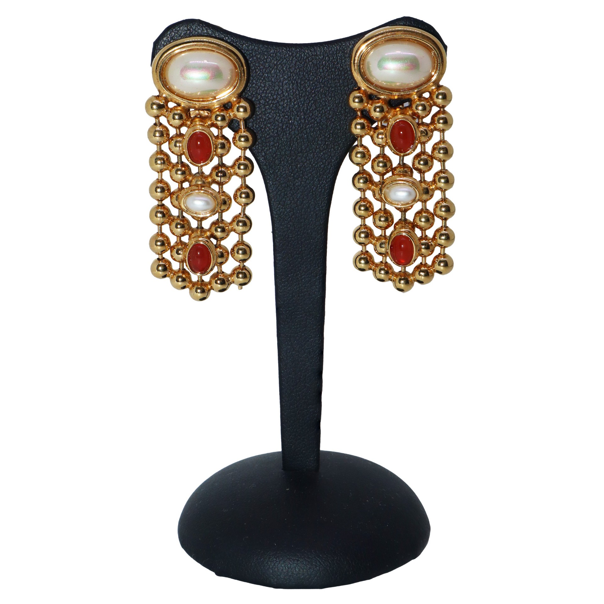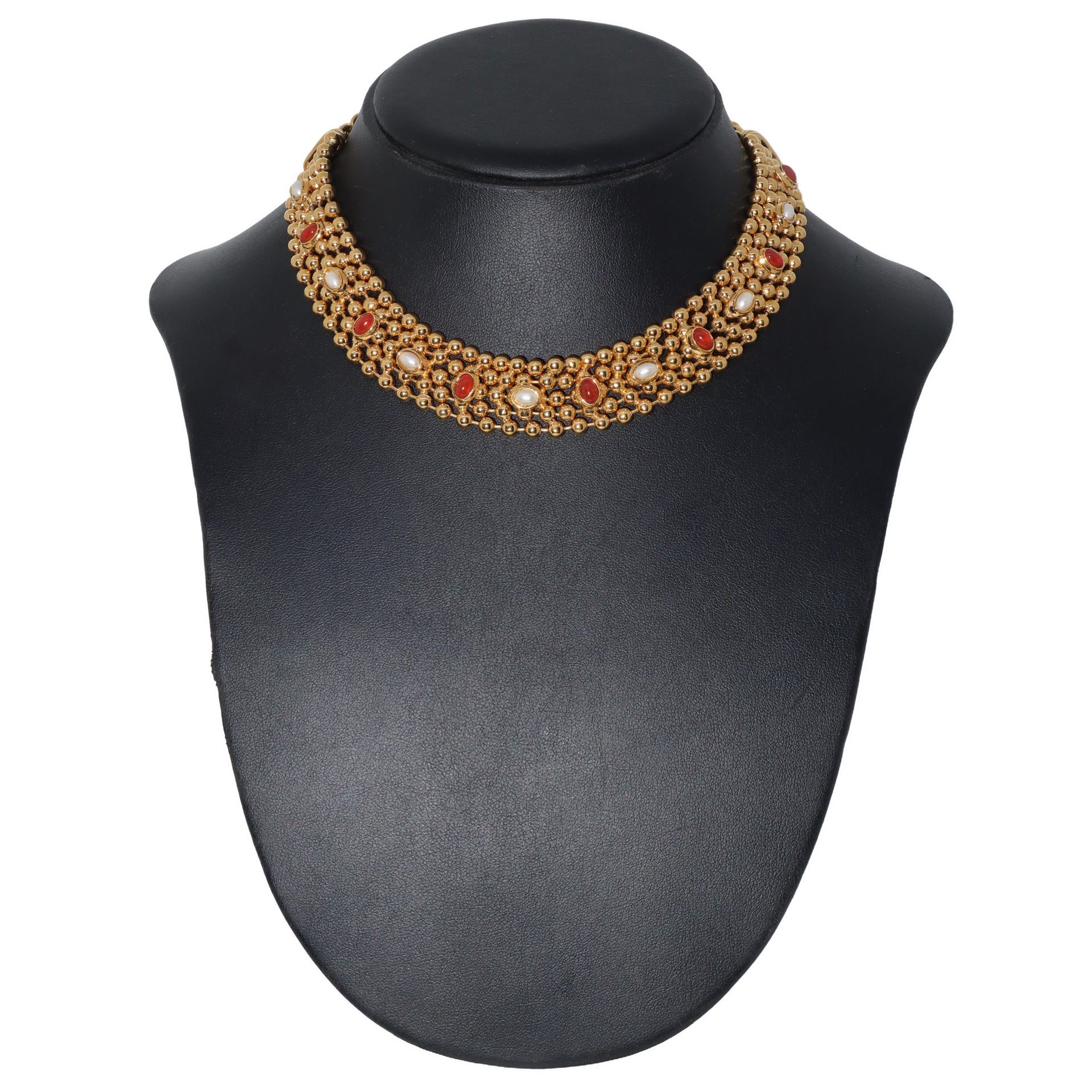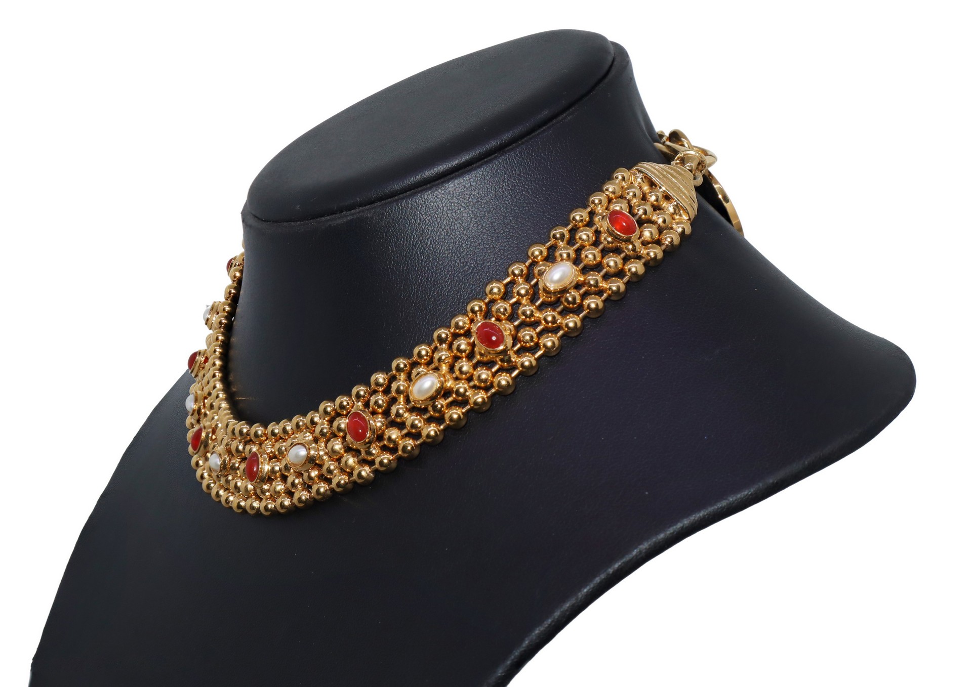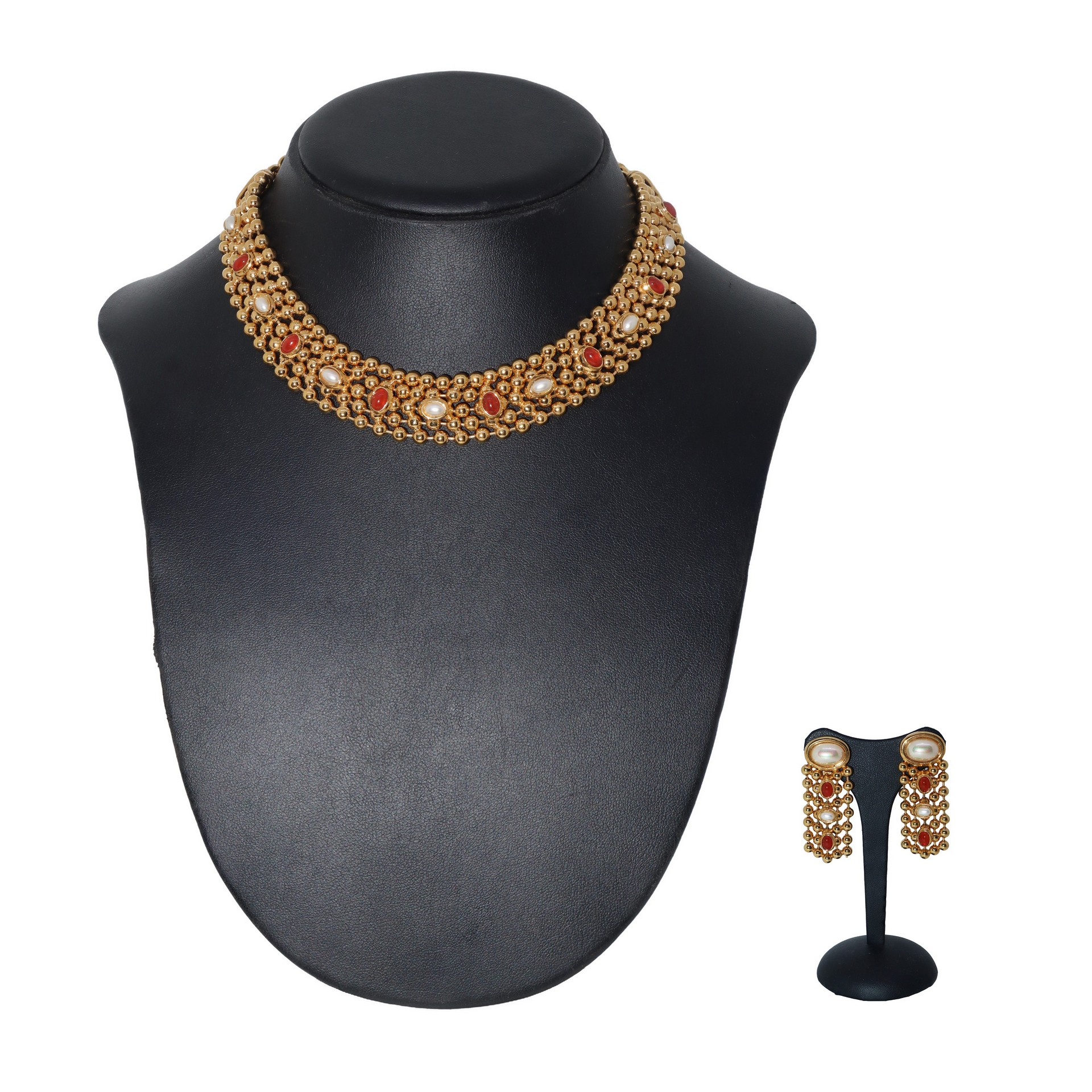 Parure composta da girocollo in metallo dorato e pietre e orecchini, Cascio, 1970s
