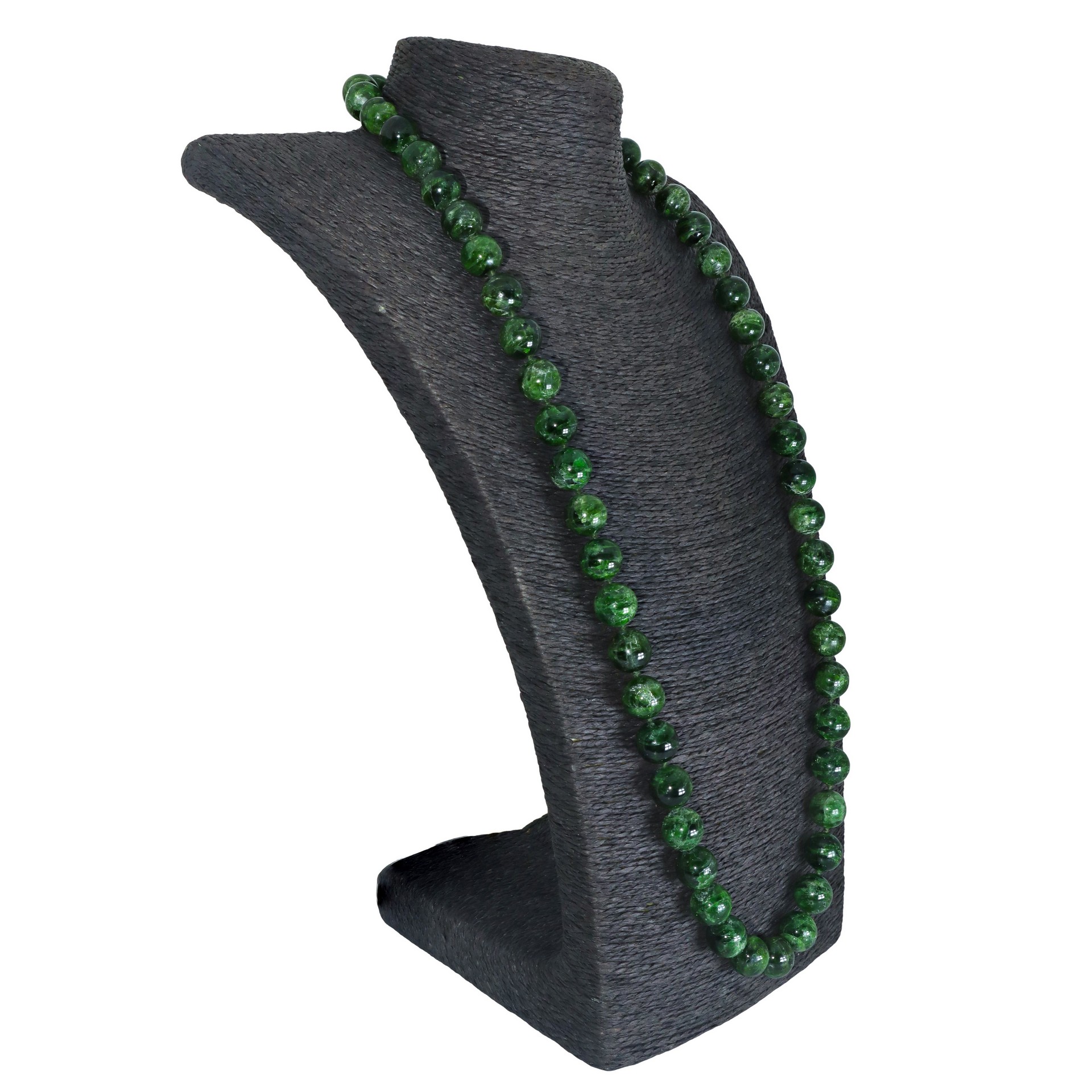 Collana ad un filo con sfere sfaccettate in granato verde lunghezza cm 80 diametro sfere mm 1,5