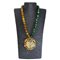 Collana composta da due fili, 1 filo in granato verde e un filo in corniola a sfere lisce con centrale in giada bruciata e gancio in rame lunghezza filo granato cm 30 diametro sfere mm 12 lunghezza filo in corniola cm 30 diametro sfere mm 6 lunghezza totale cm 70