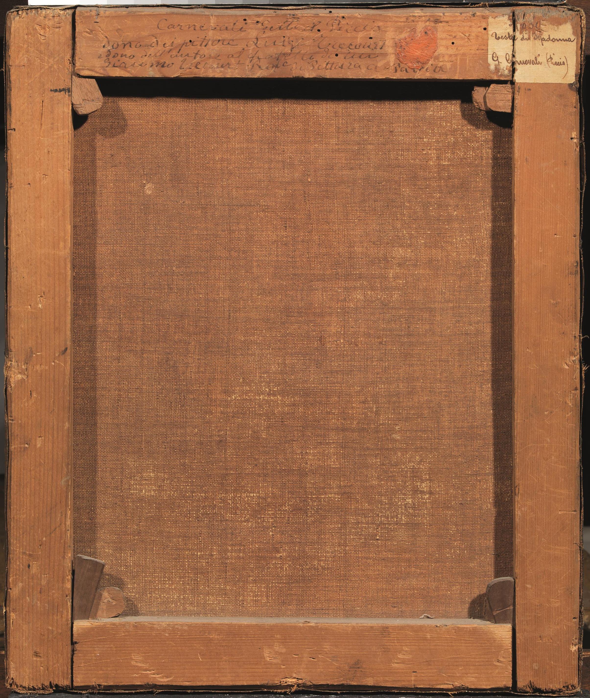 sul retro del telaio: iscritto “Carnevali detto il Piccio / Dono del pittore Luigi Trecourt / e dono dell’autore al fratello di lui / Giacomo Trecourt ... di Pittura a Pavia”