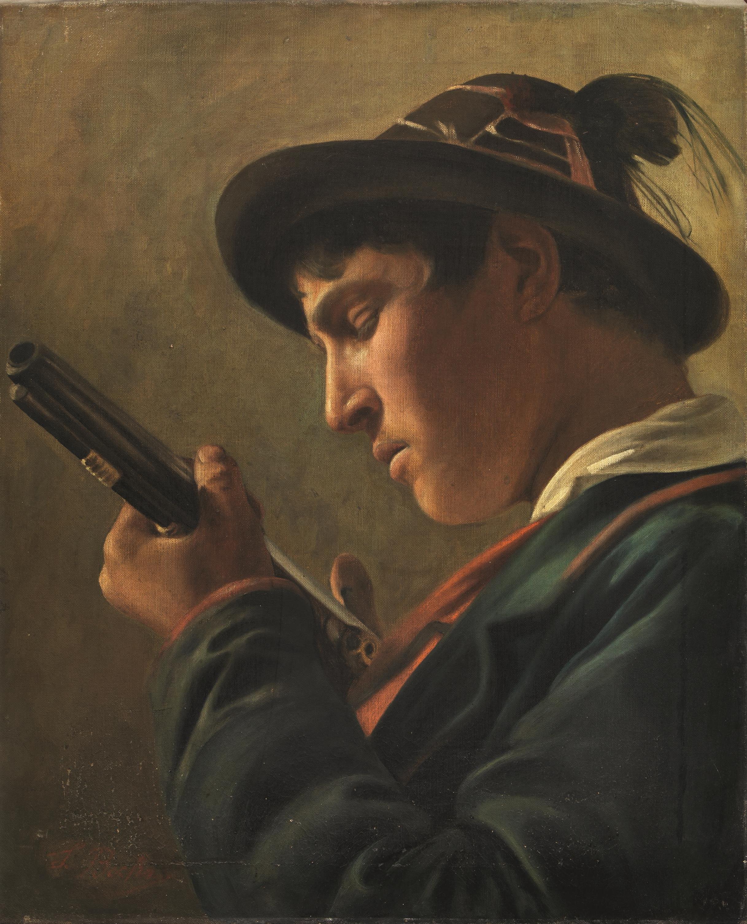 Luigi Bechi(Firenze 1830 - 1919)IL CACCIATOREolio su tela, cm 52x42firmato in...