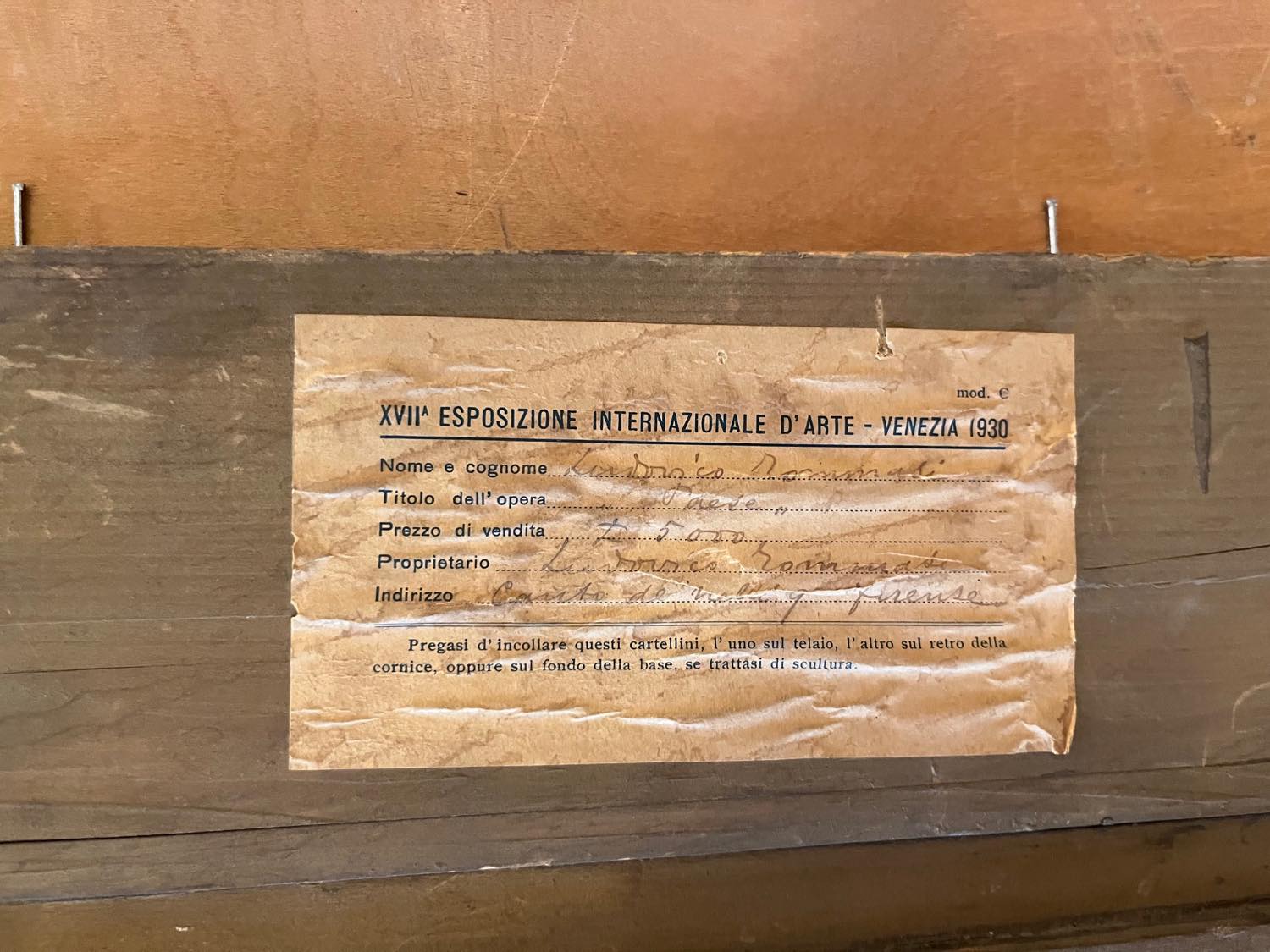 Al retro cartiglio XVII Esposizione Internazionale d’Arte - Venezia 1930