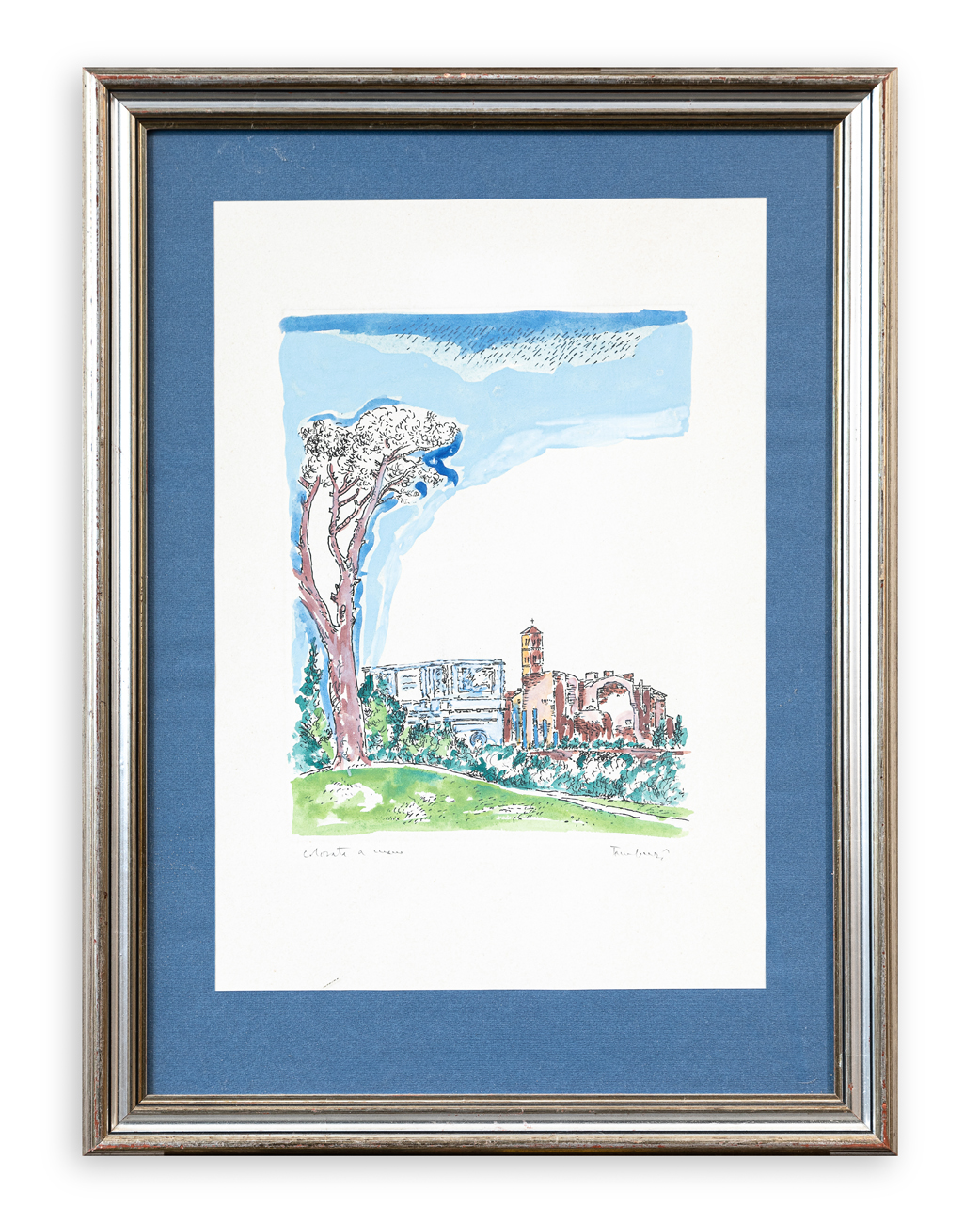 Firma e iscrizione "colorata a mano" a matita al fronte