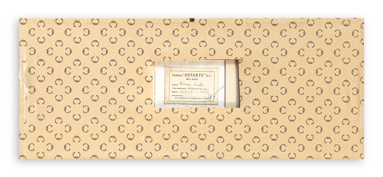 Etichetta della Galleria Astarte (Mi) al retro