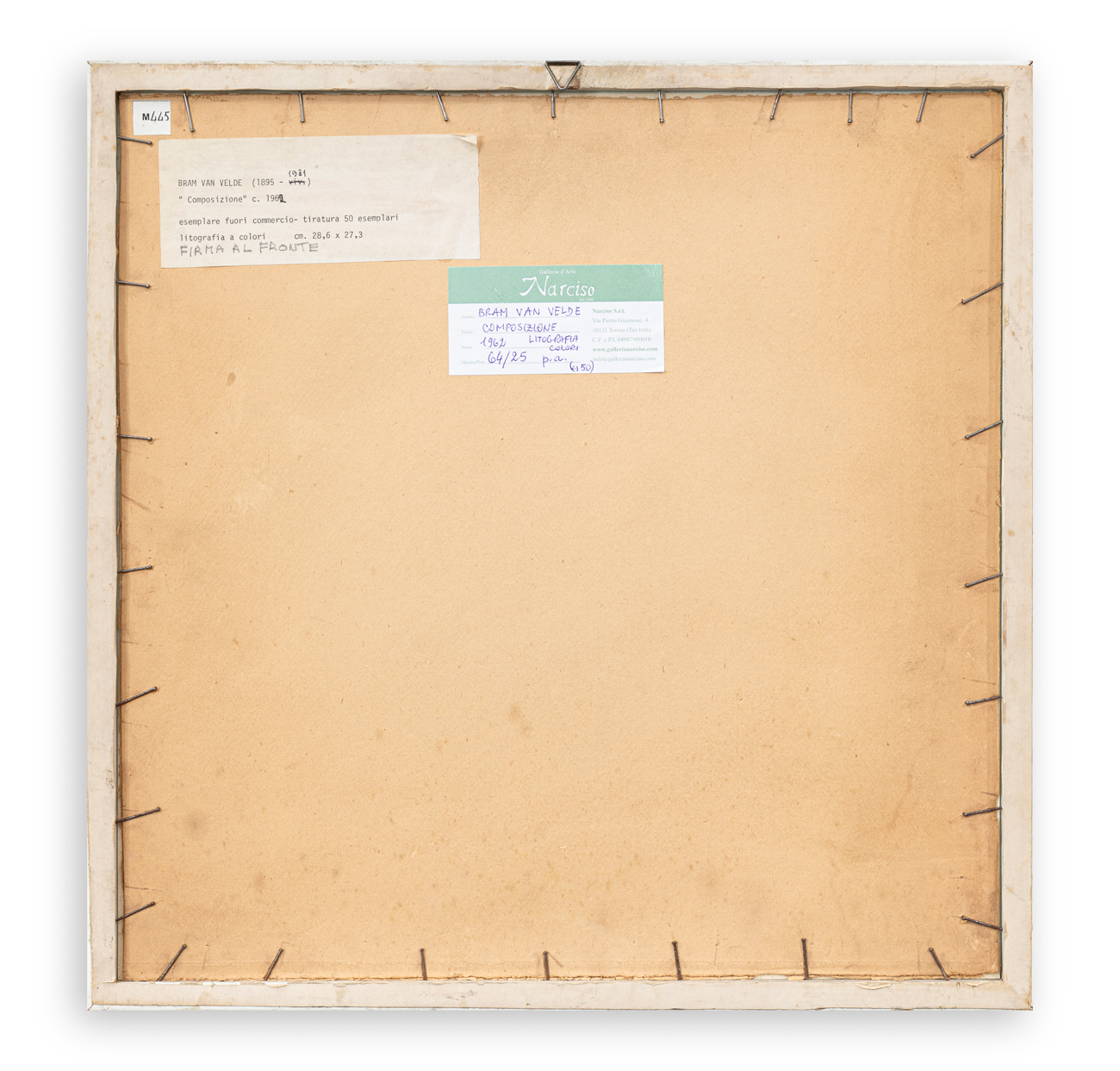Etichetta della Galleria d'Arte Narciso (TO) al retro