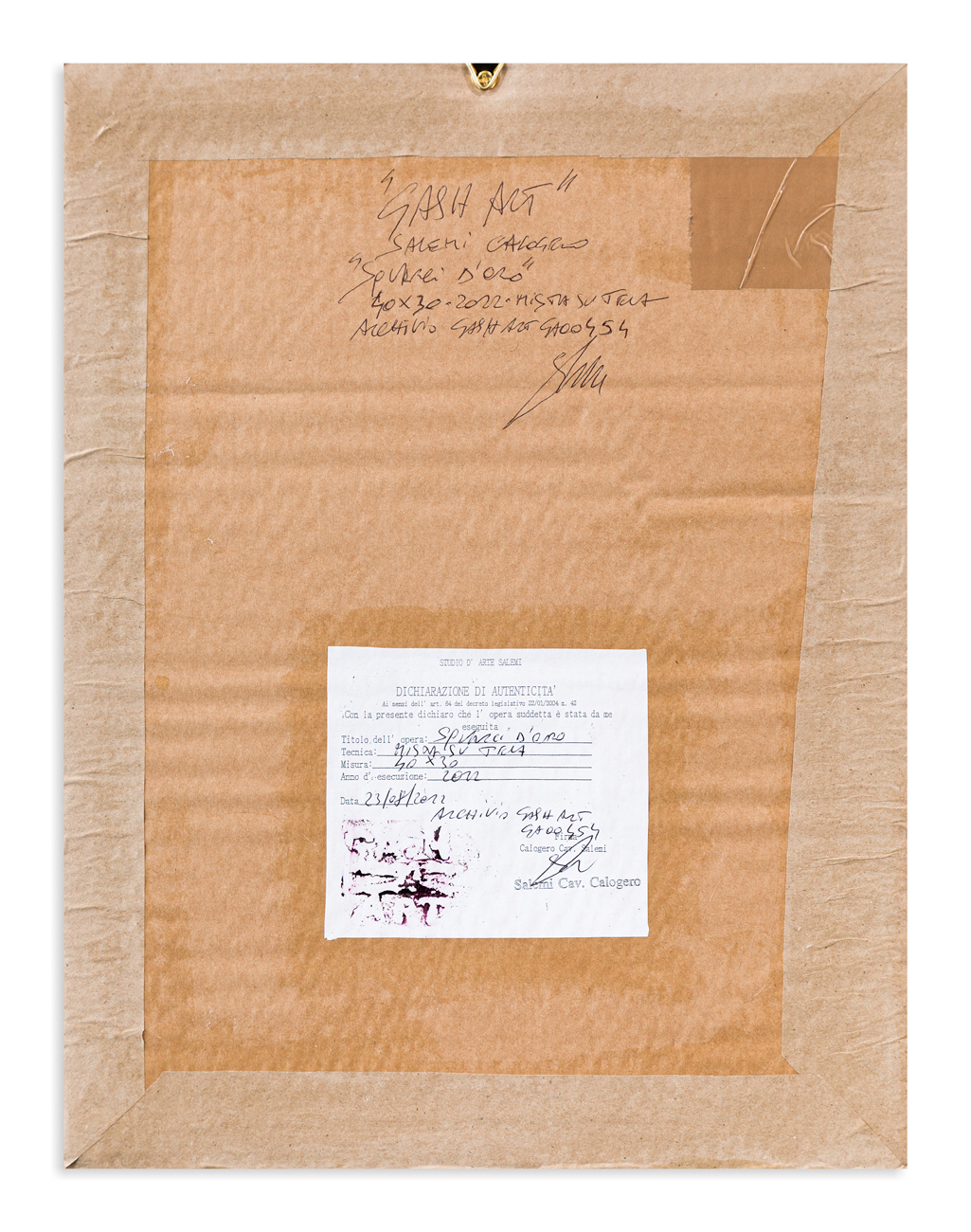 Etichetta dell'Artista al retro