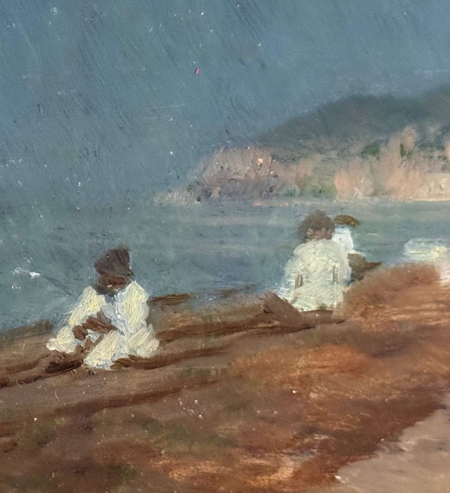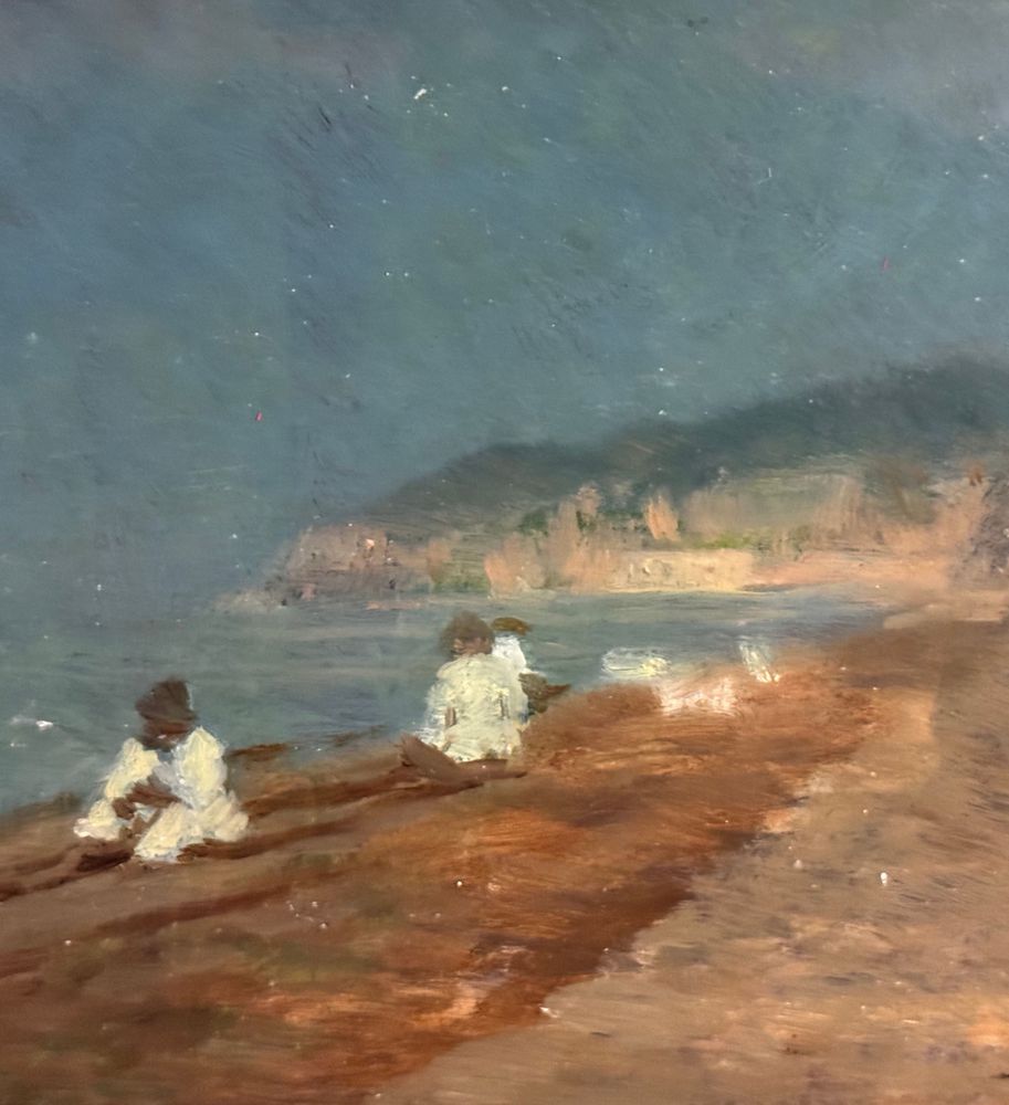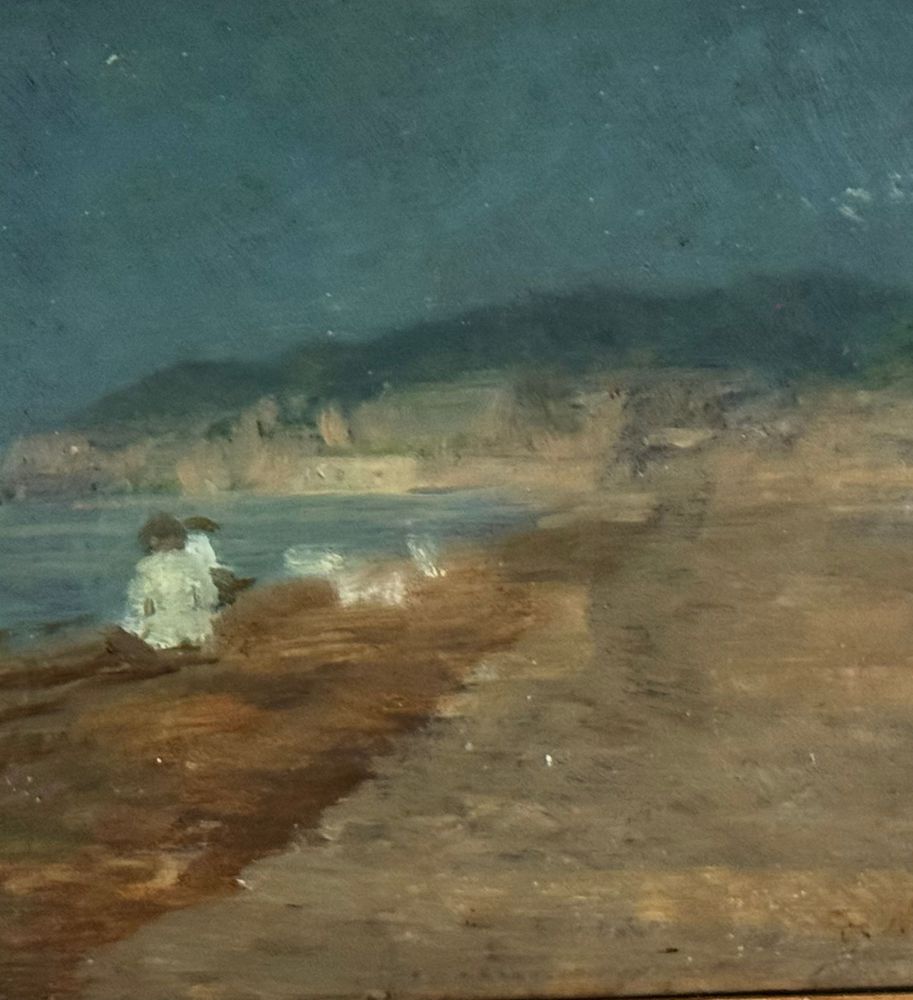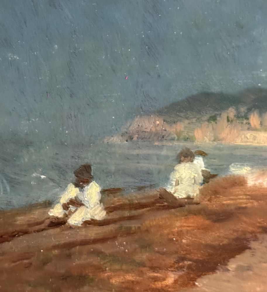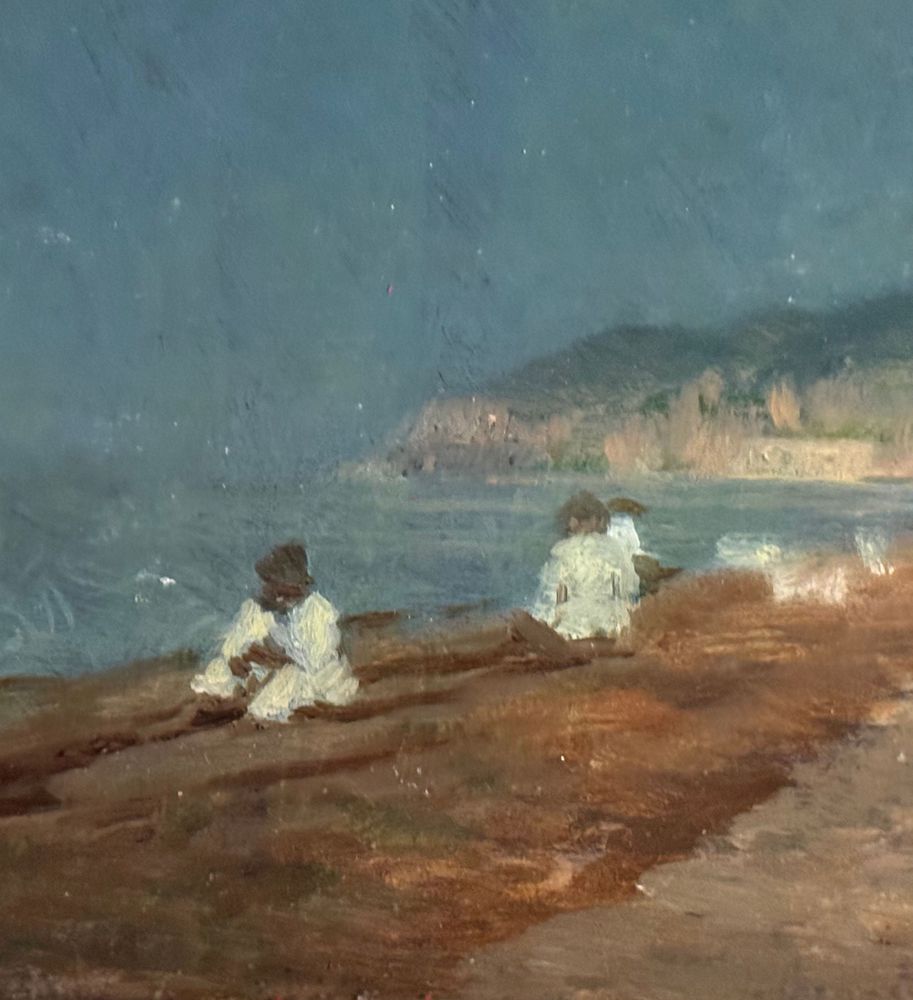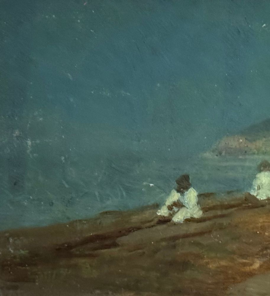 Dipinto olio su tavola, periodo XIX secolo, scuola Italiana, raffigurante Marina con personaggi. Dimensioni compreso cornice: 37x27 cm. Dimensioni interno cornice: 24x14 cm. Reca firma in basso a destra De Nittis (1846 -1884). Opera in buone condizioni.