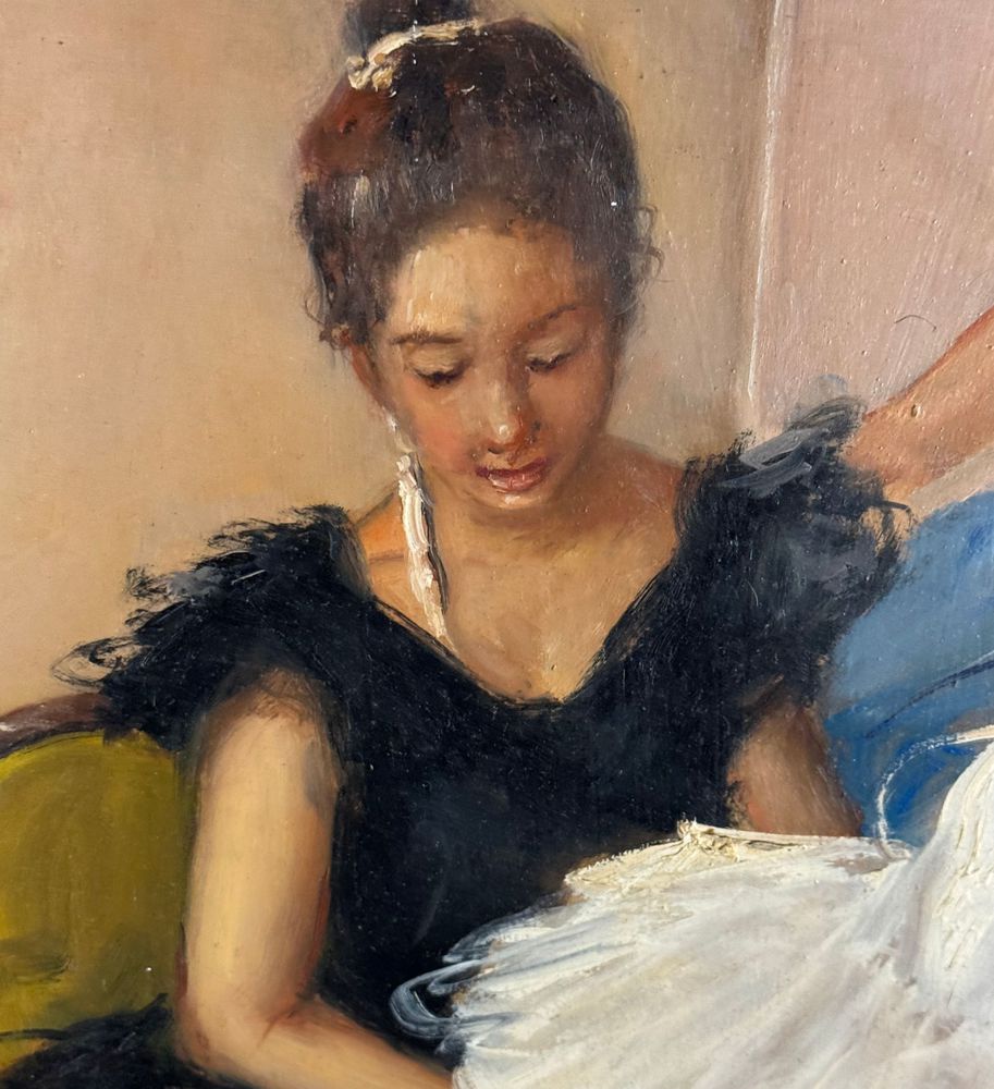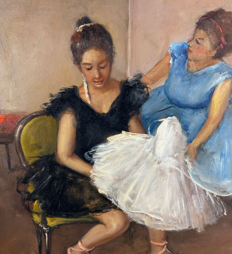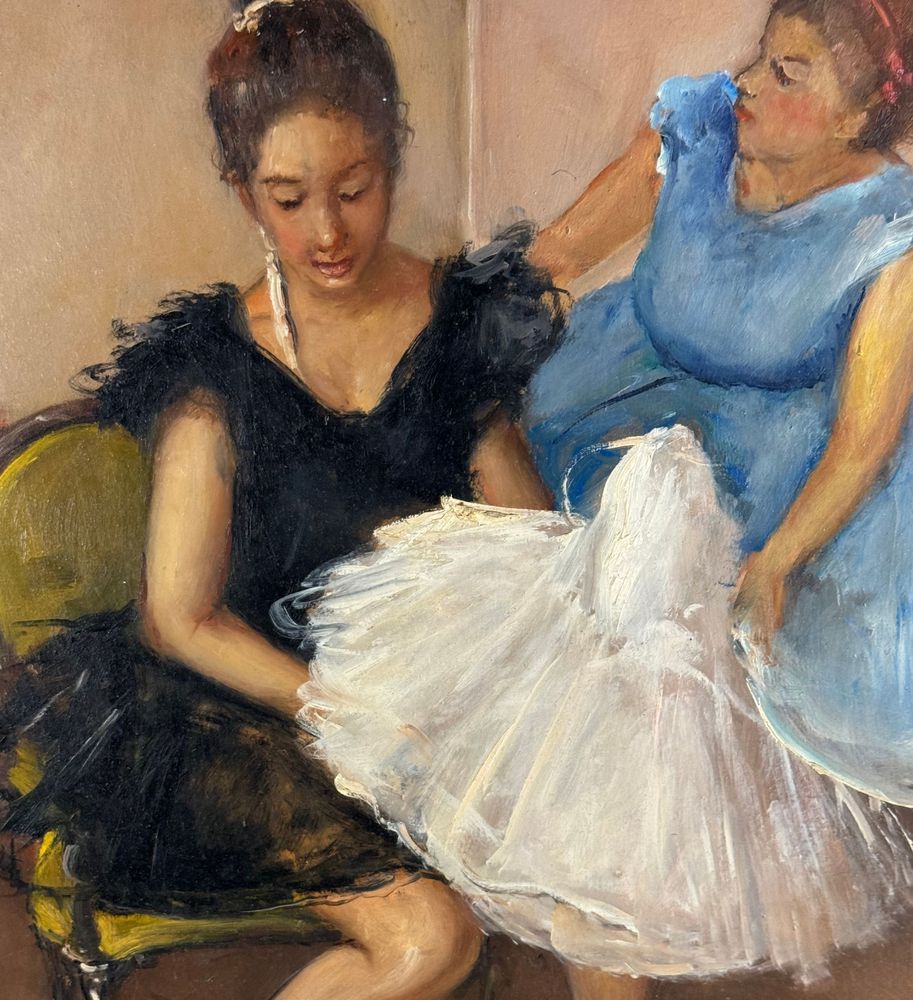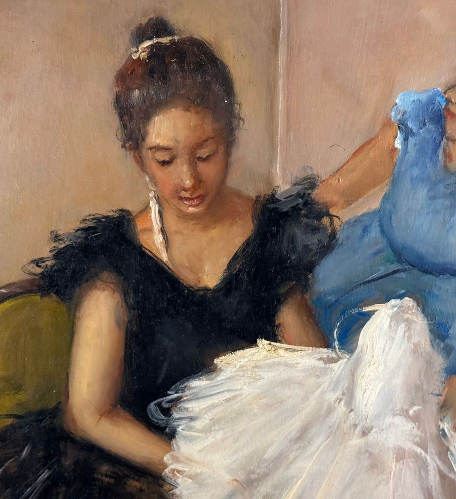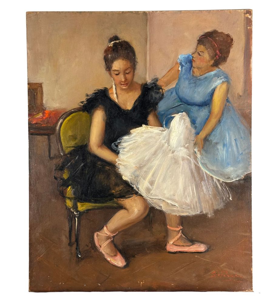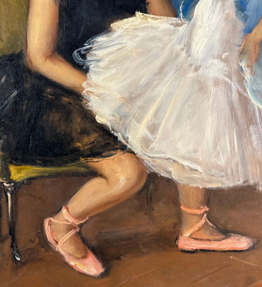 Dipinto olio su pannello, periodo XX secolo, scuola Italiana, raffigurante Preparazione alla danza. Dimensioni: 40x50 cm. Firmato in basso a destra Giovanni Pane. Opera in buone condizioni.