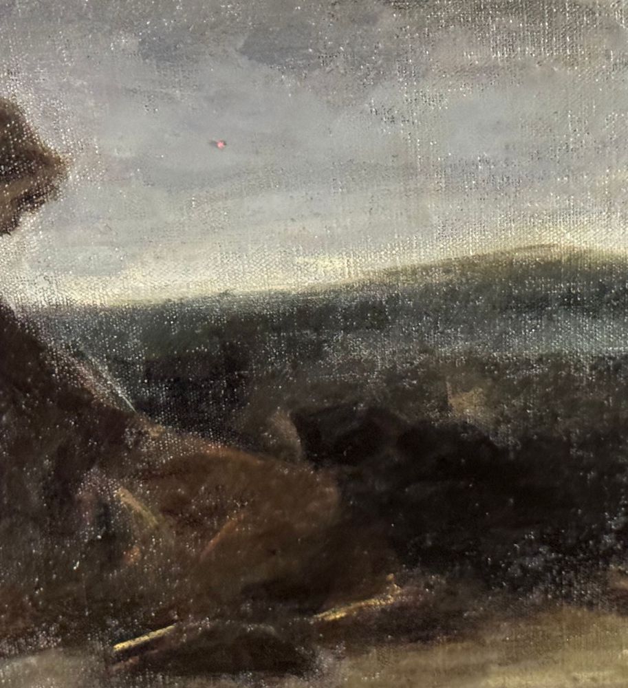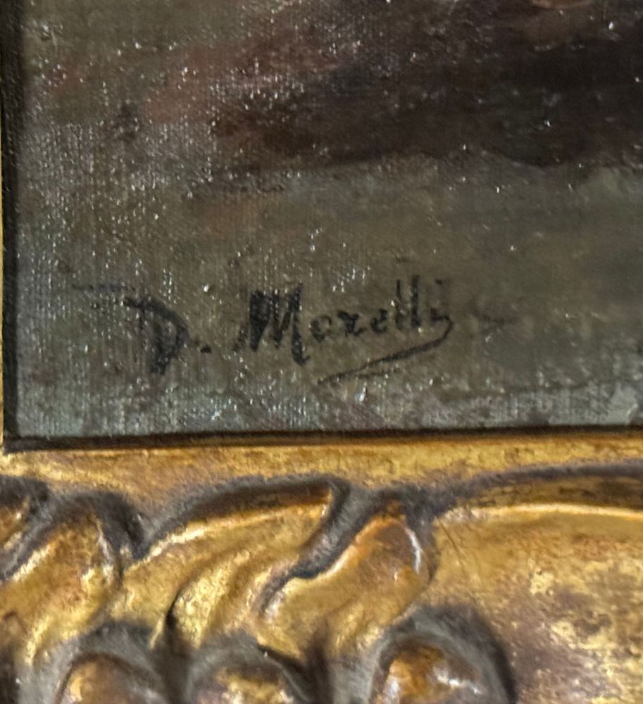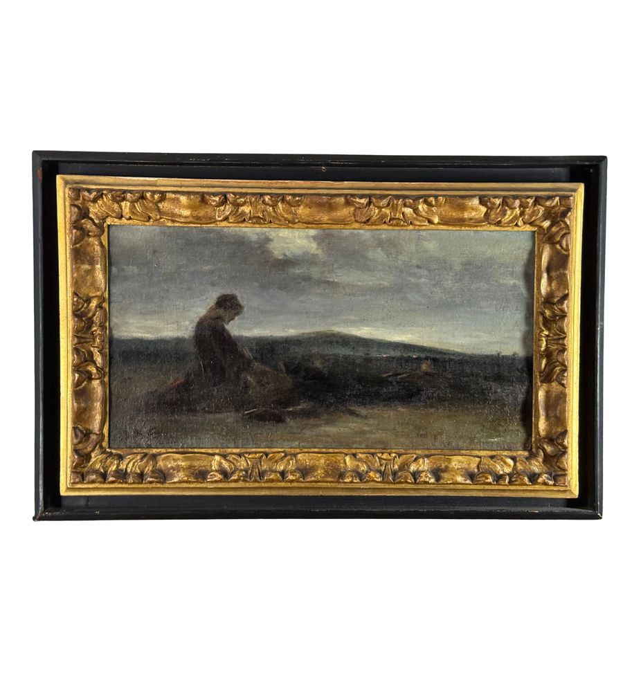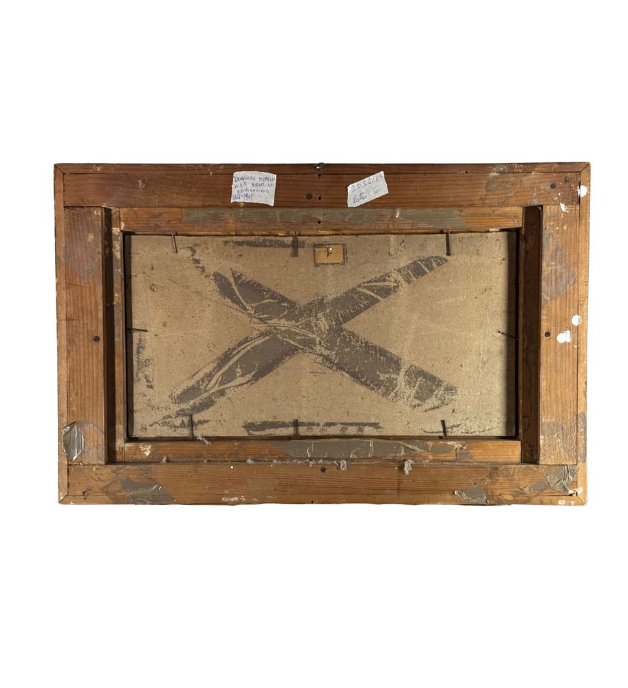 Dipinto olio su tela applicata su cartoncino, periodo XIX secolo, scuola Italiana, raffigurante Paesaggio con personaggio. Dimensioni compreso cornice: 61x39 cm. Dimensioni interno cornice: 45x25 cm. Firmato in basso a sinistra Domenico Morelli (1826 - 1901). Opera in buone condizioni con lievi segni di vissuto come da foto allegate.