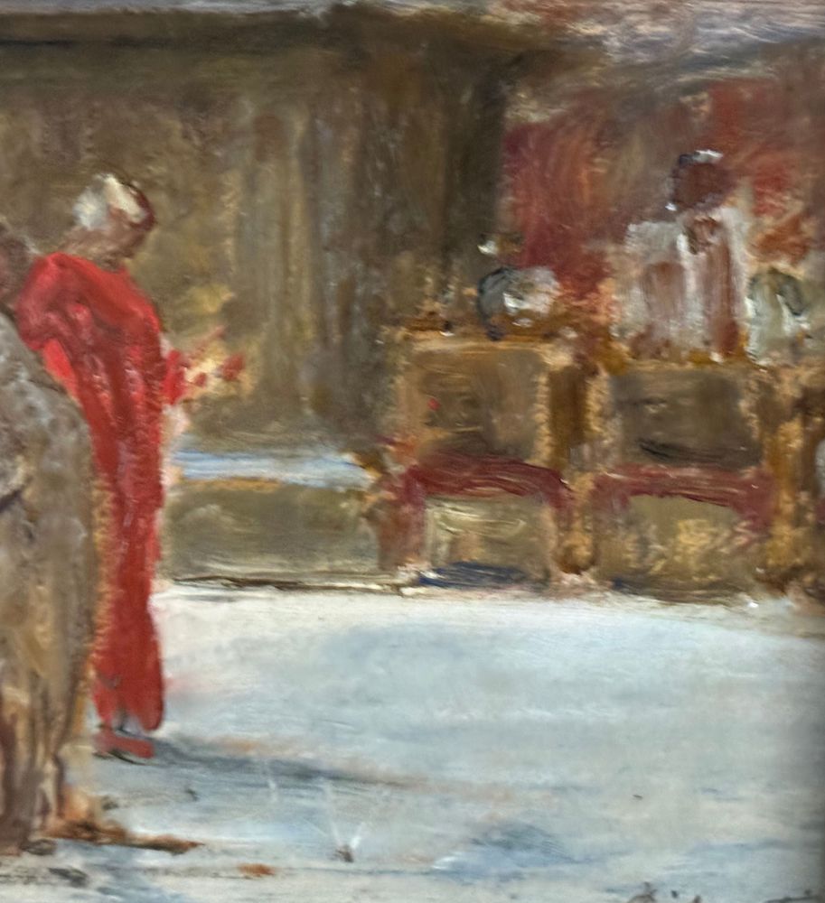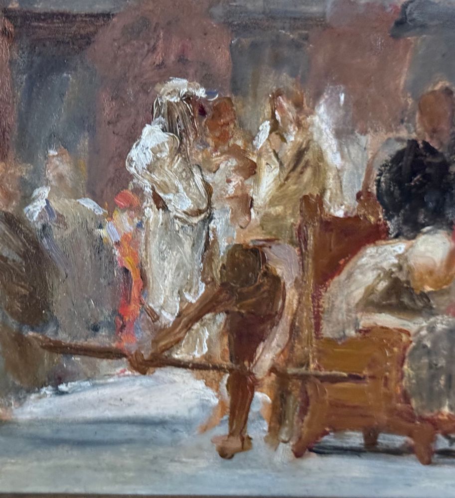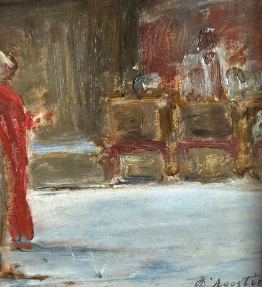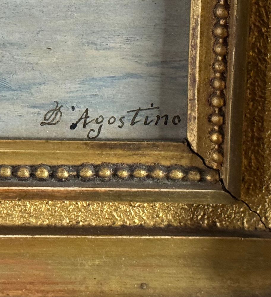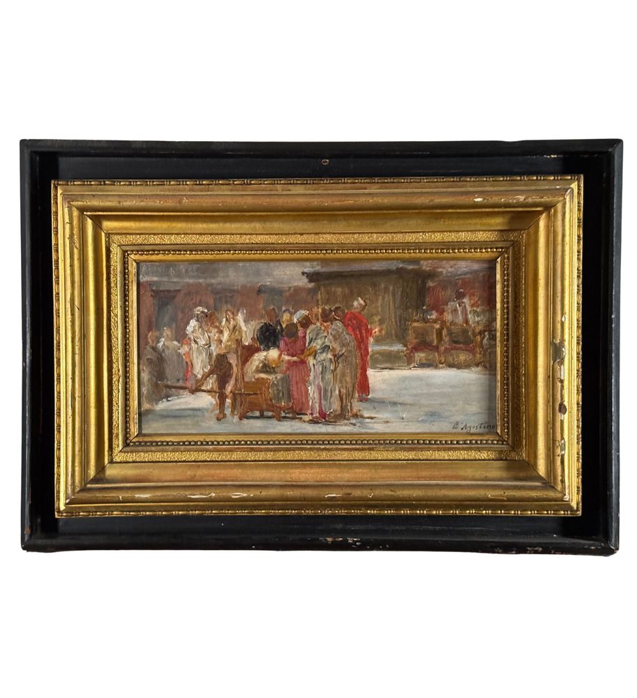 Dipinto olio su cartoncino, periodo XIX/XX secolo, scuola Italiana, raffigurante Momento storico. Dimensioni compreso cornice: 49x33 cm. Dimensioni interno cornice: 30x15 cm. Firmato in basso a destra D'Agostino. Opera in buone condizioni.