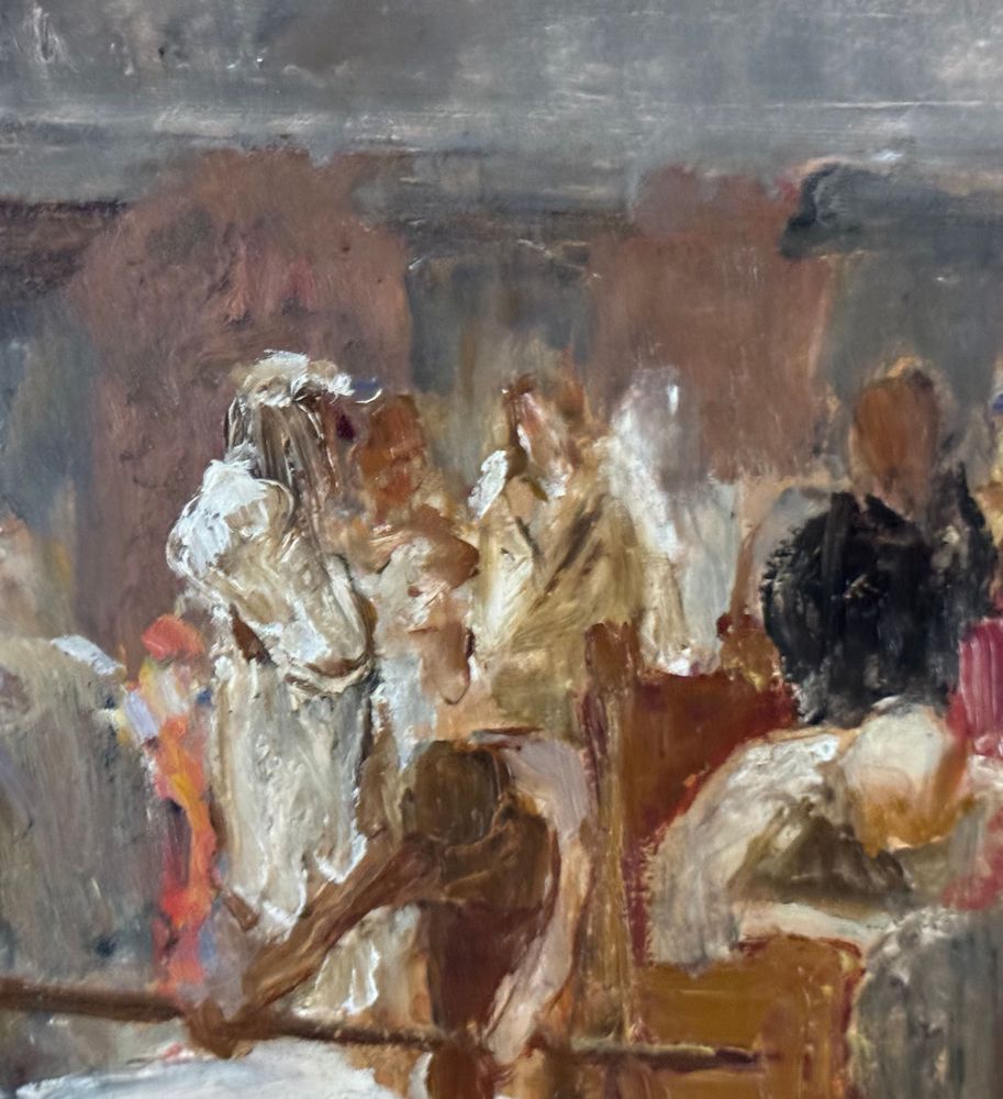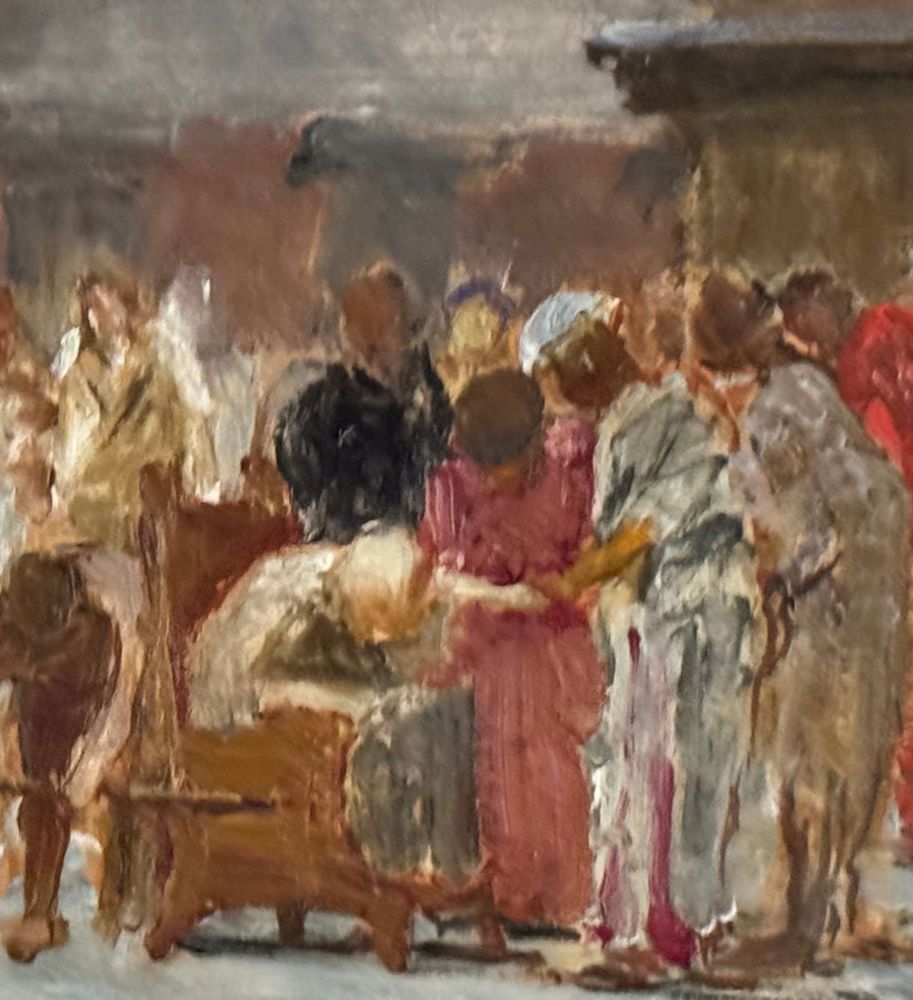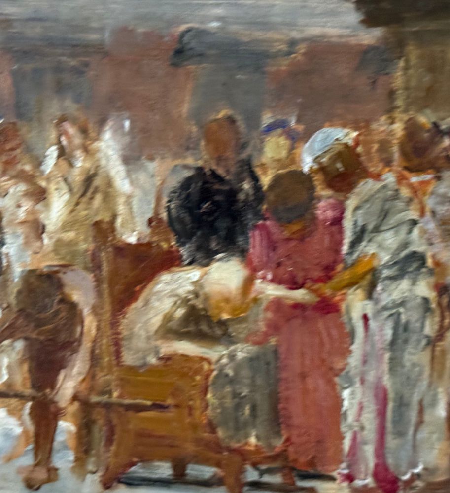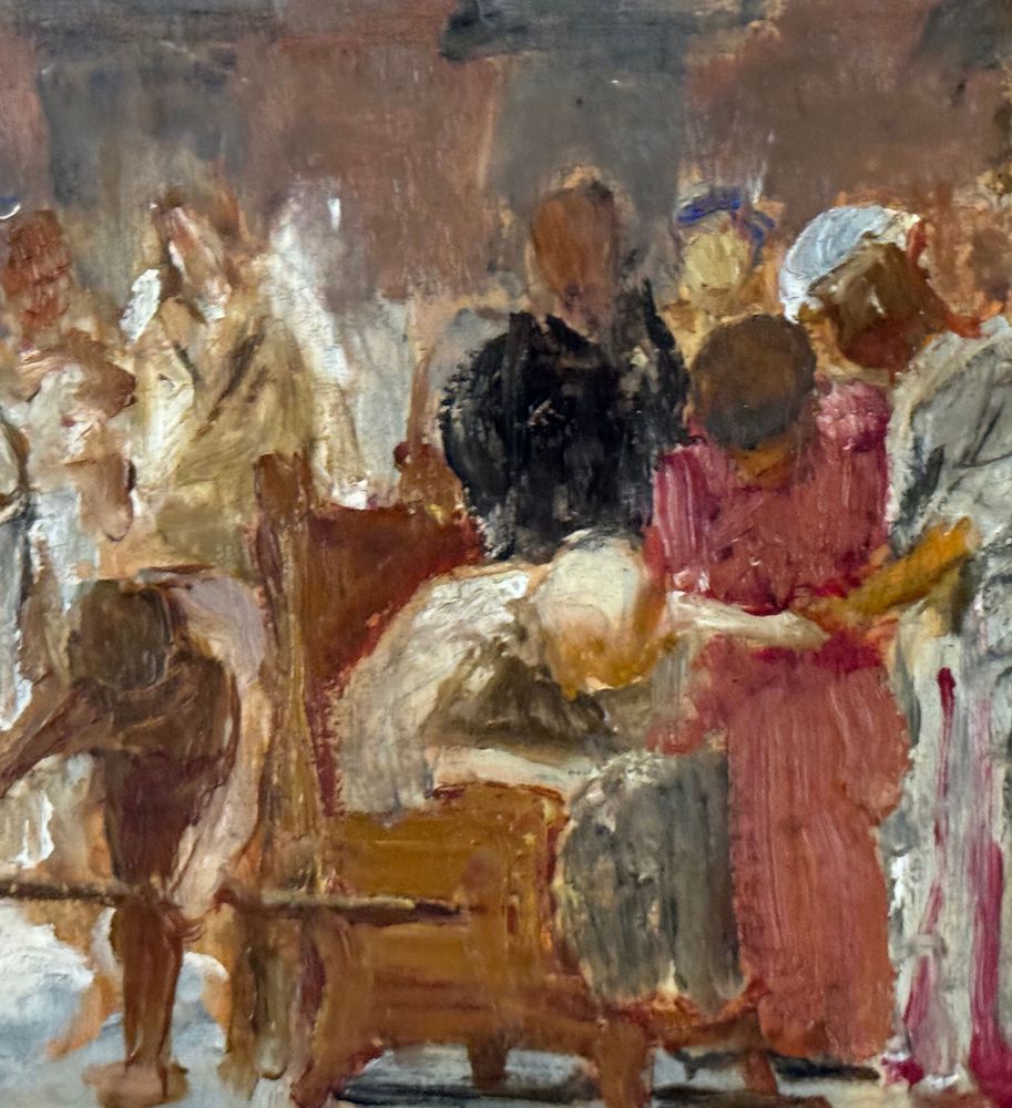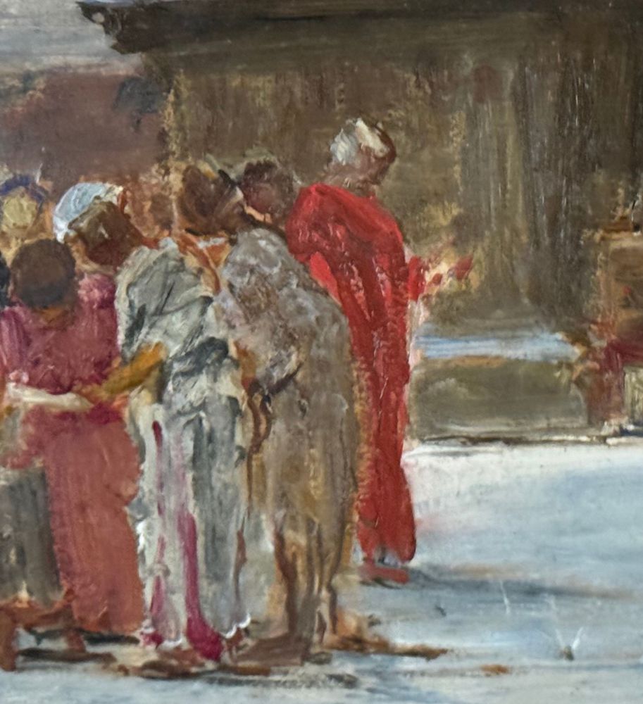 Dipinto olio su cartoncino, periodo XIX/XX secolo, scuola Italiana, raffigurante Momento storico. Dimensioni compreso cornice: 49x33 cm. Dimensioni interno cornice: 30x15 cm. Firmato in basso a destra D'Agostino. Opera in buone condizioni.