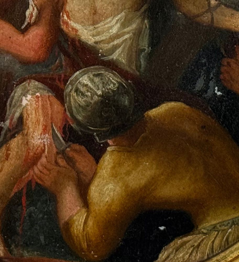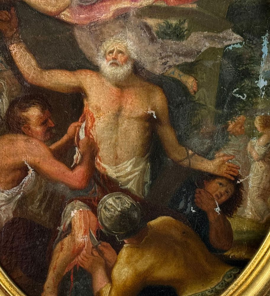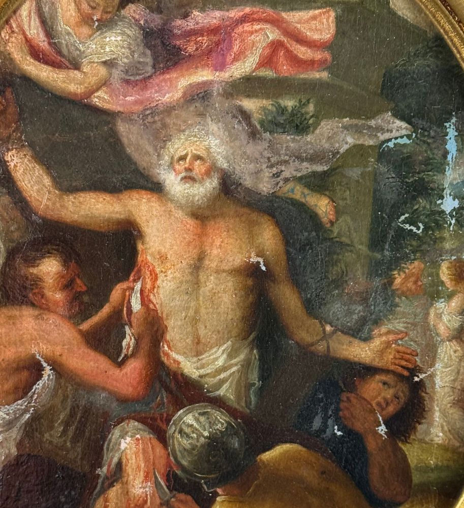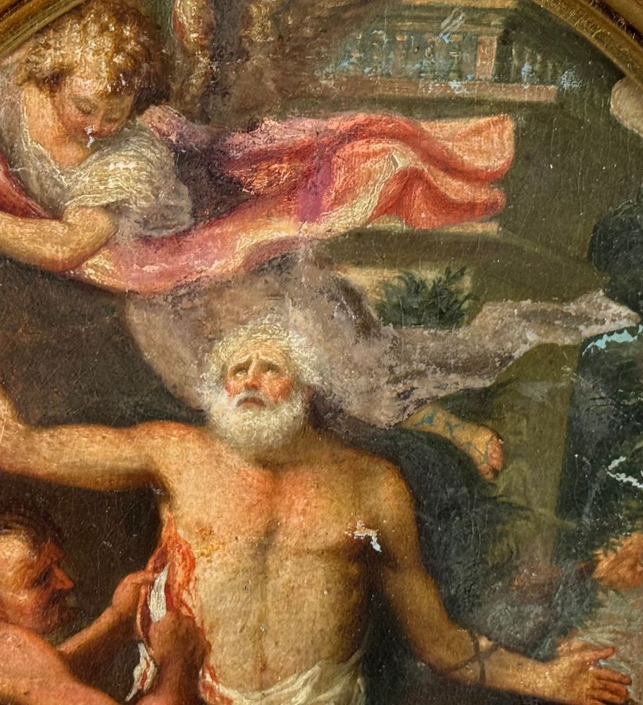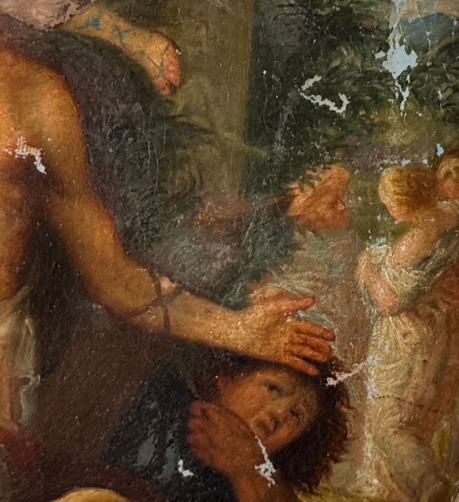 Dipinto olio su tela applicata su cartoncino, periodo XVIII/XIX secolo, scuola Italiana, raffigurante Scena Biblica di forma ovale. Dimensioni compreso cornice: 29x35 cm. Dimensioni interno cornice: 24x30 cm. Artista anonimo. Opera in buone condizioni con lievi segni di vissuto come da foto allegate.