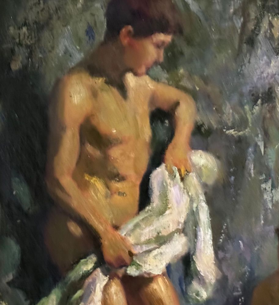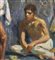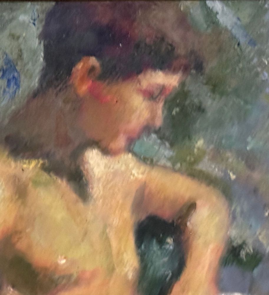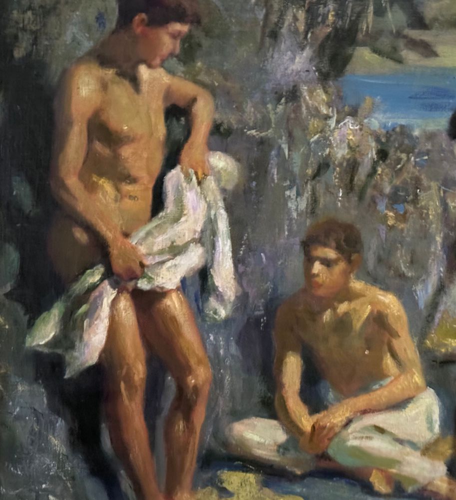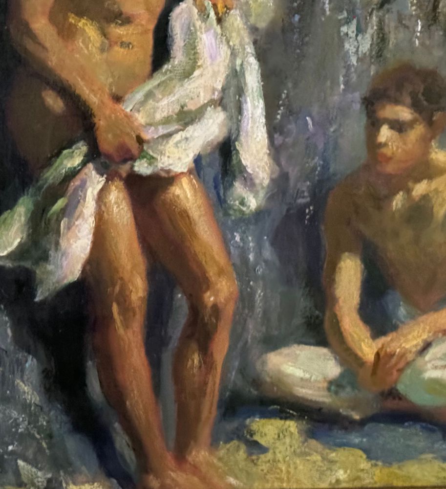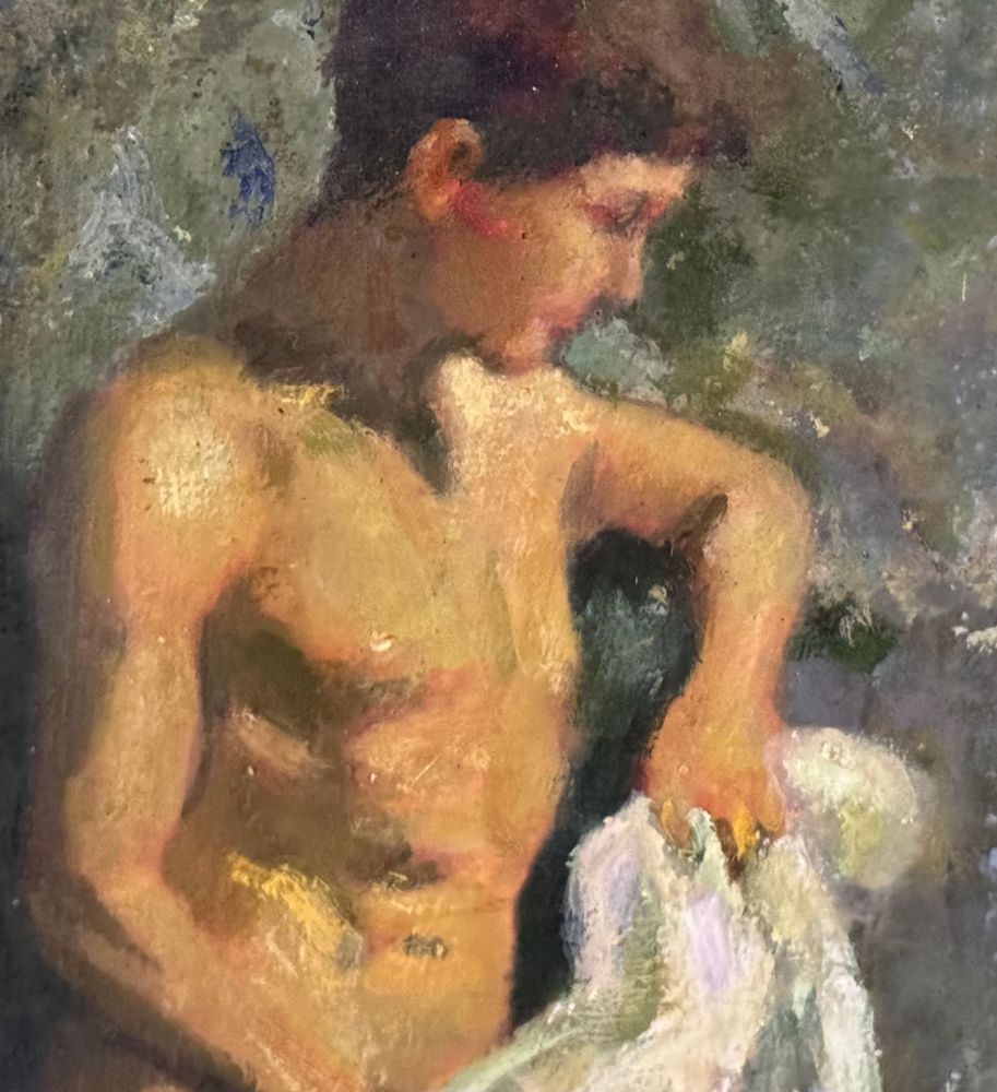 Dipinto olio su tavola, periodo XX secolo, scuola Italiana raffigurante Personaggi maschili su marina. Dimensioni compreso cornice: 46x50 cm. Dimensioni interno cornice: 35x39 cm. Artista anonimo. Opera in buone condizioni.