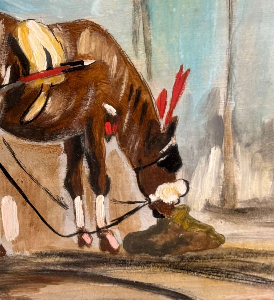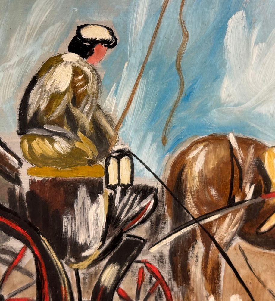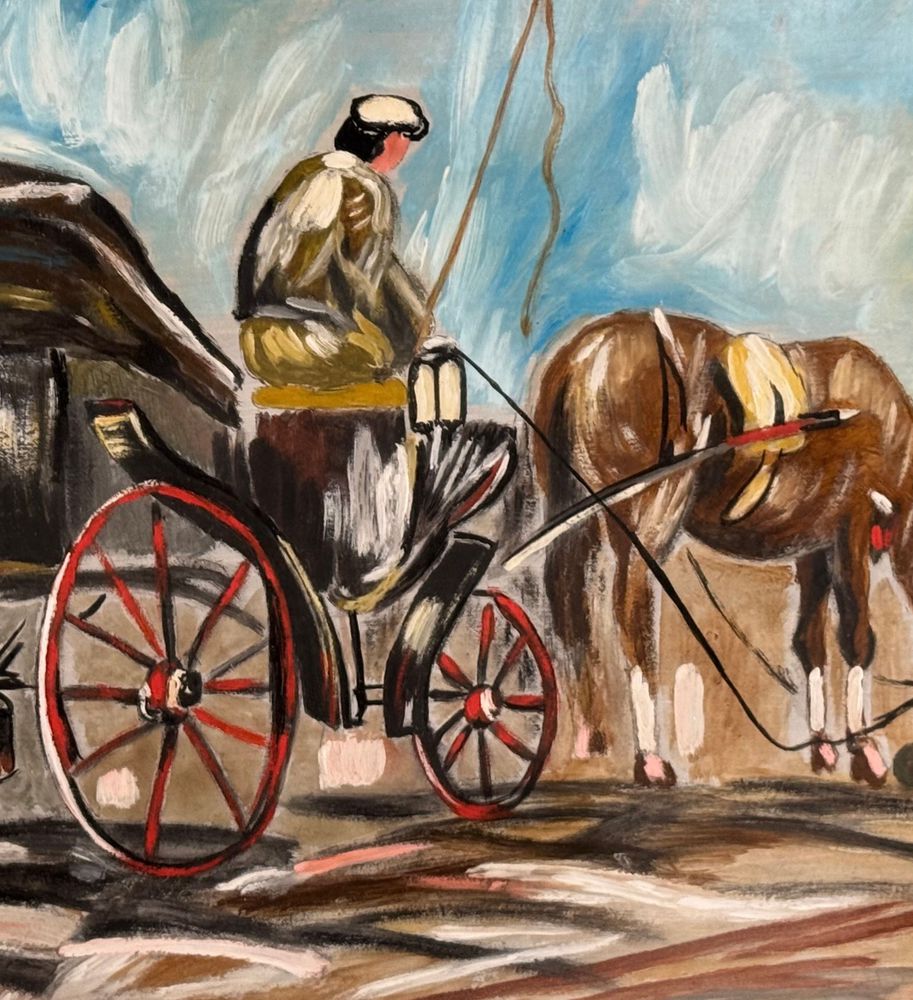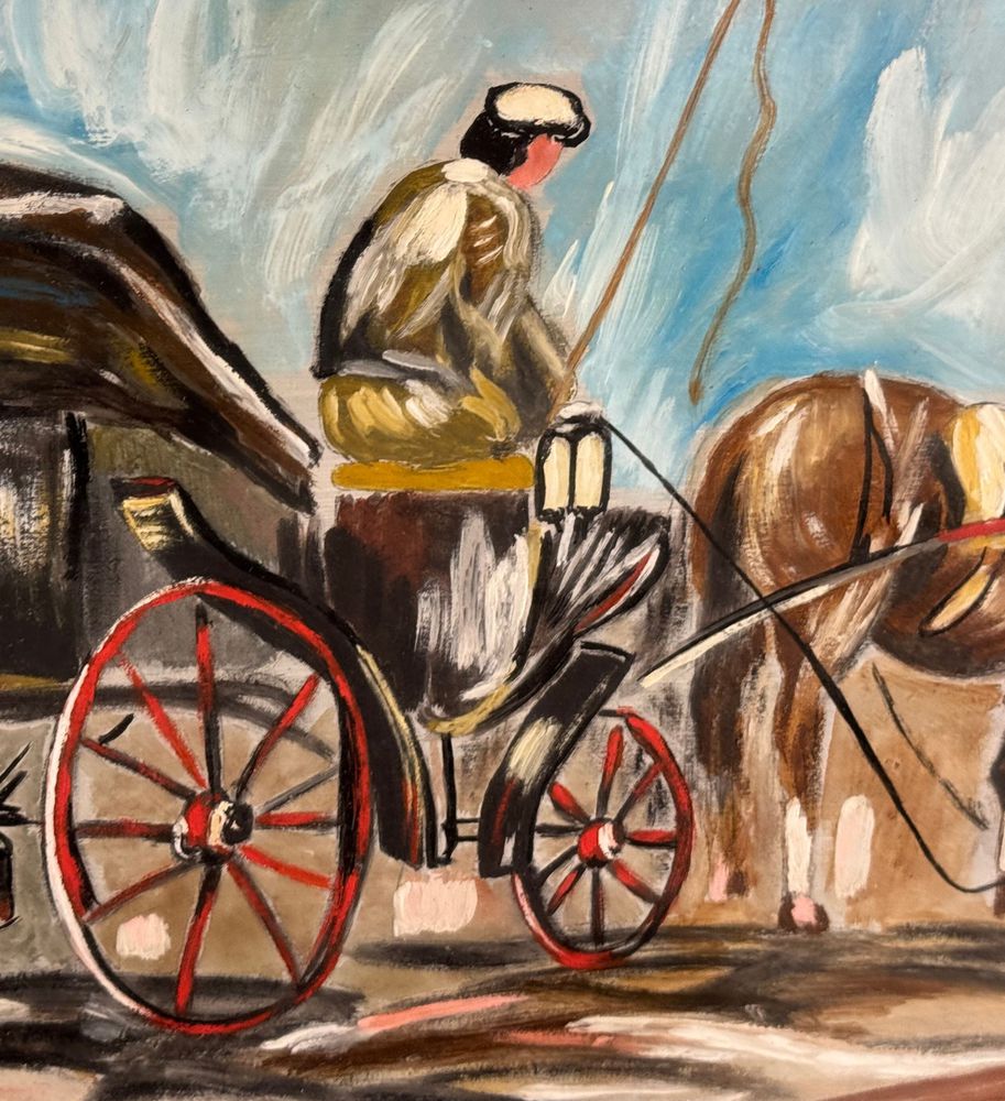 Dipinto olio su pannello, periodo XX secolo, scuola Italiana, raffigurante Carrozza. Dimensioni compreso cornice: 64x50 cm. Dimensioni interno cornice: 35x50 cm. Firmato in basso a destra Antonio Asturi. Opera in buone condizioni.