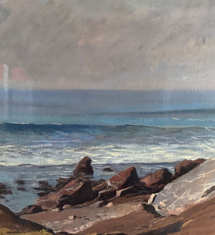 Dipinto olio su tela, periodo XX secolo, scuola Italiana, raffigurante Marina. Dimensioni compreso cornice: 94x74 cm. Dimensioni interno cornice: 50x70 cm. Firmato in basso a sinistra artista non identificato. Opera in buone condizioni.