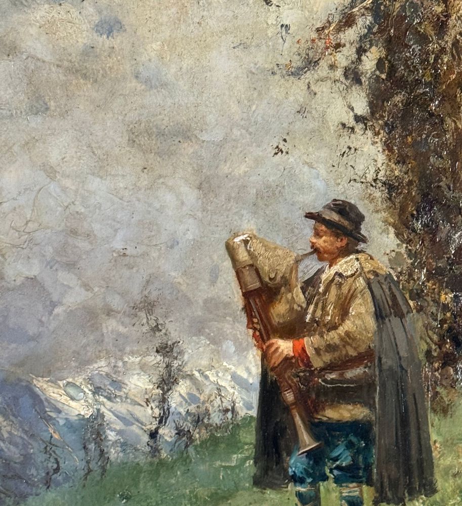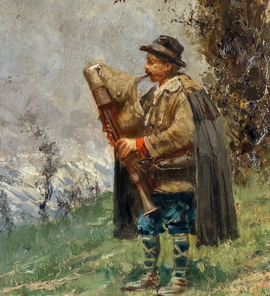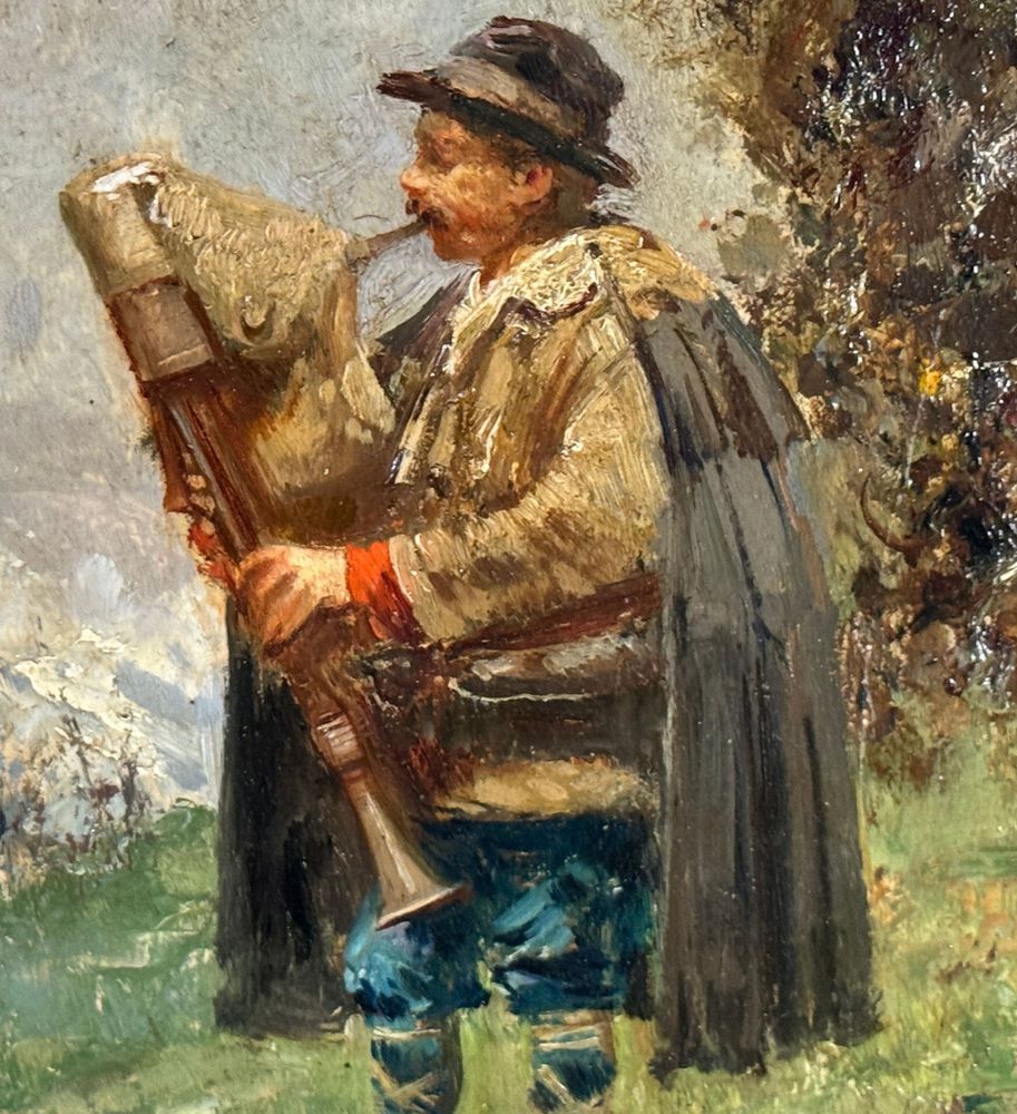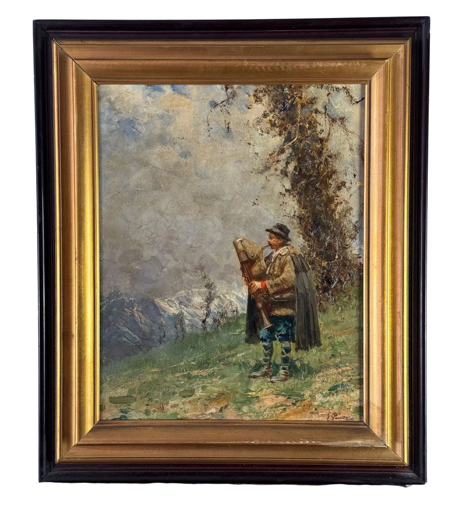 Dipinto olio su tavola, periodo XX secolo, scuola Italiana raffigurante Zampognaro napoletano. Dimensioni compreso cornice: 51x60 cm. Dimensioni interno cornice: 45x35 cm. Firmato in basso a destra Giovanni Panza (1894 - 1989). Opera in buone condizioni.