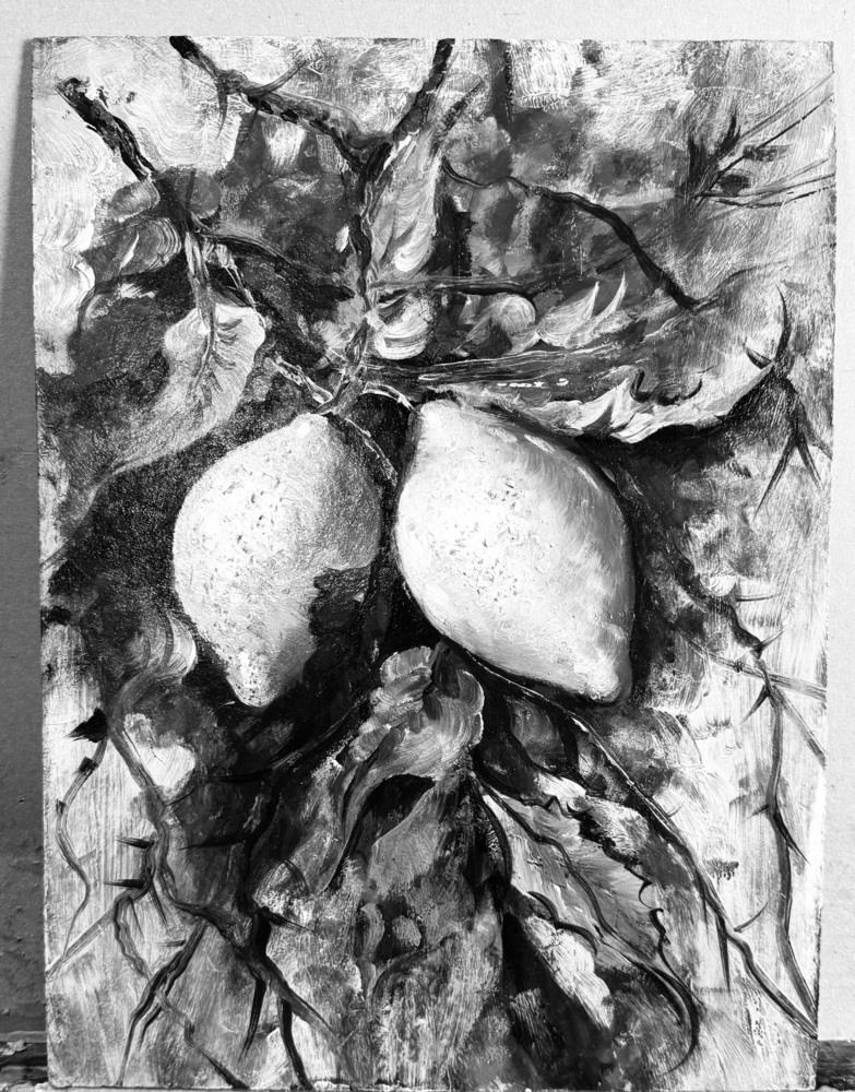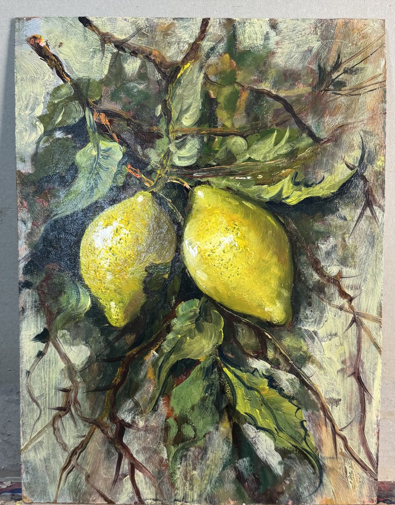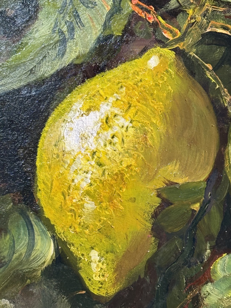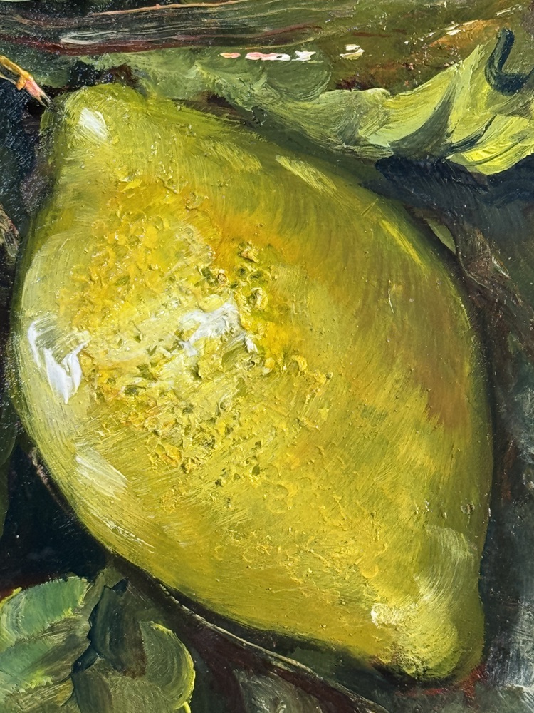 Dipinto olio su pannello, periodo XX secolo, scuola Italiana raffigurante Natura morta (limoni). Dimensioni: 30x40 cm. Da artista anonimo. Opera in buone condizioni.