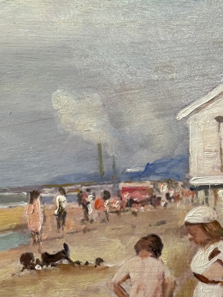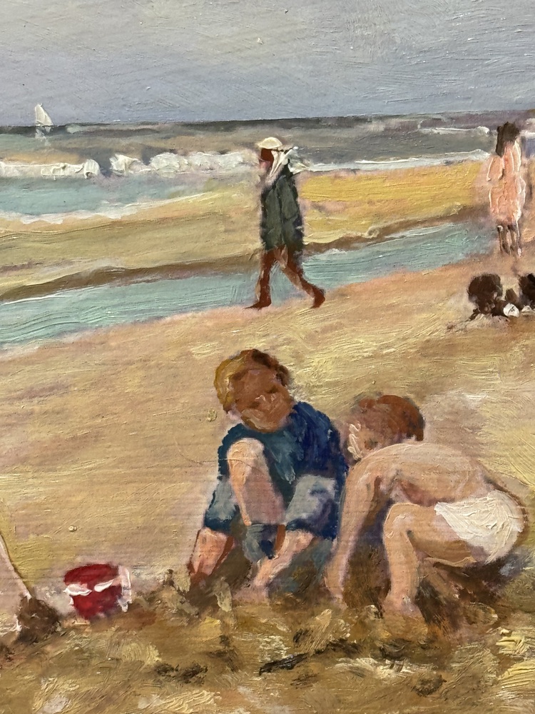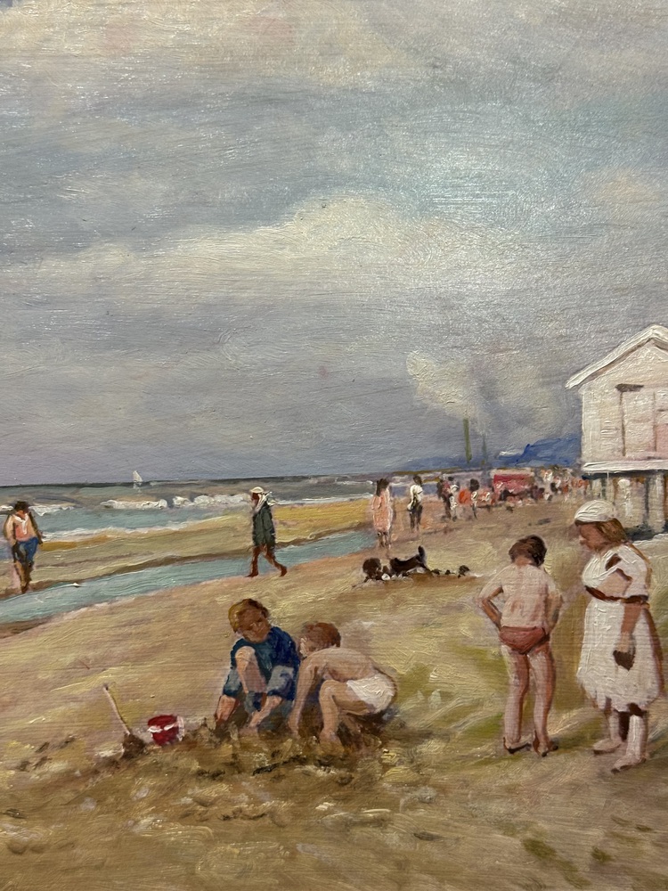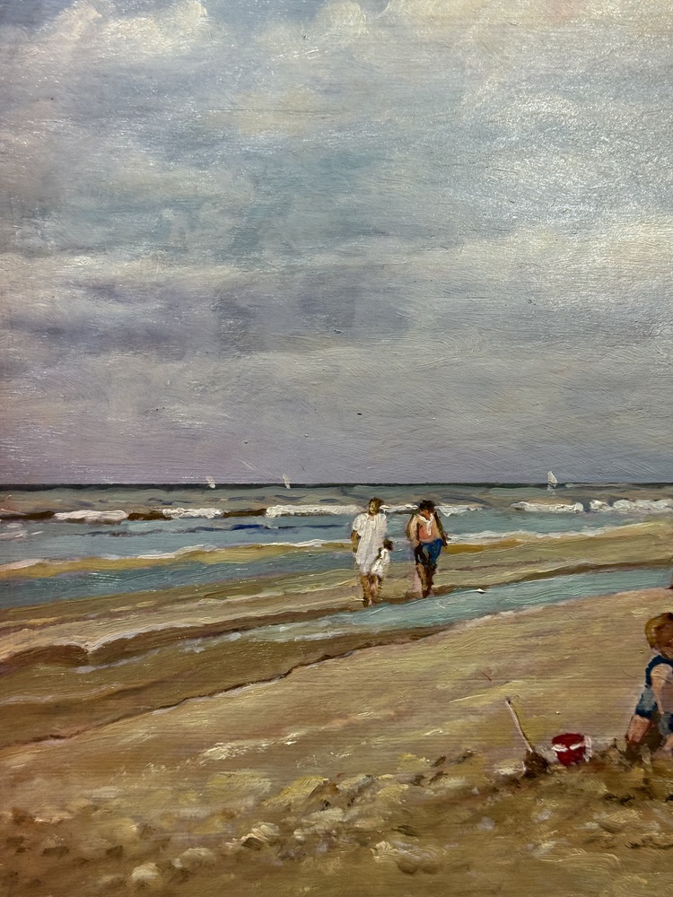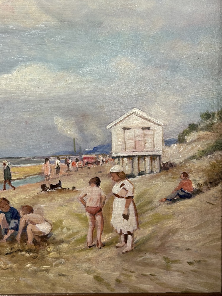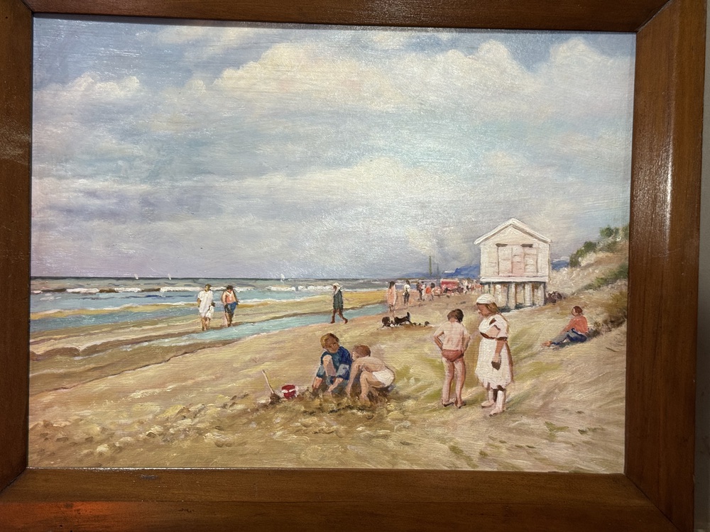 Dipinto olio su pannello, periodo XX secolo, scuola Italiana raffigurante Personaggi su marina. Dimensioni compreso cornice: 51x41 cm. Dimensioni interno cornice: 44x33 cm. Da artista anonimo. Opera in buone condizioni.