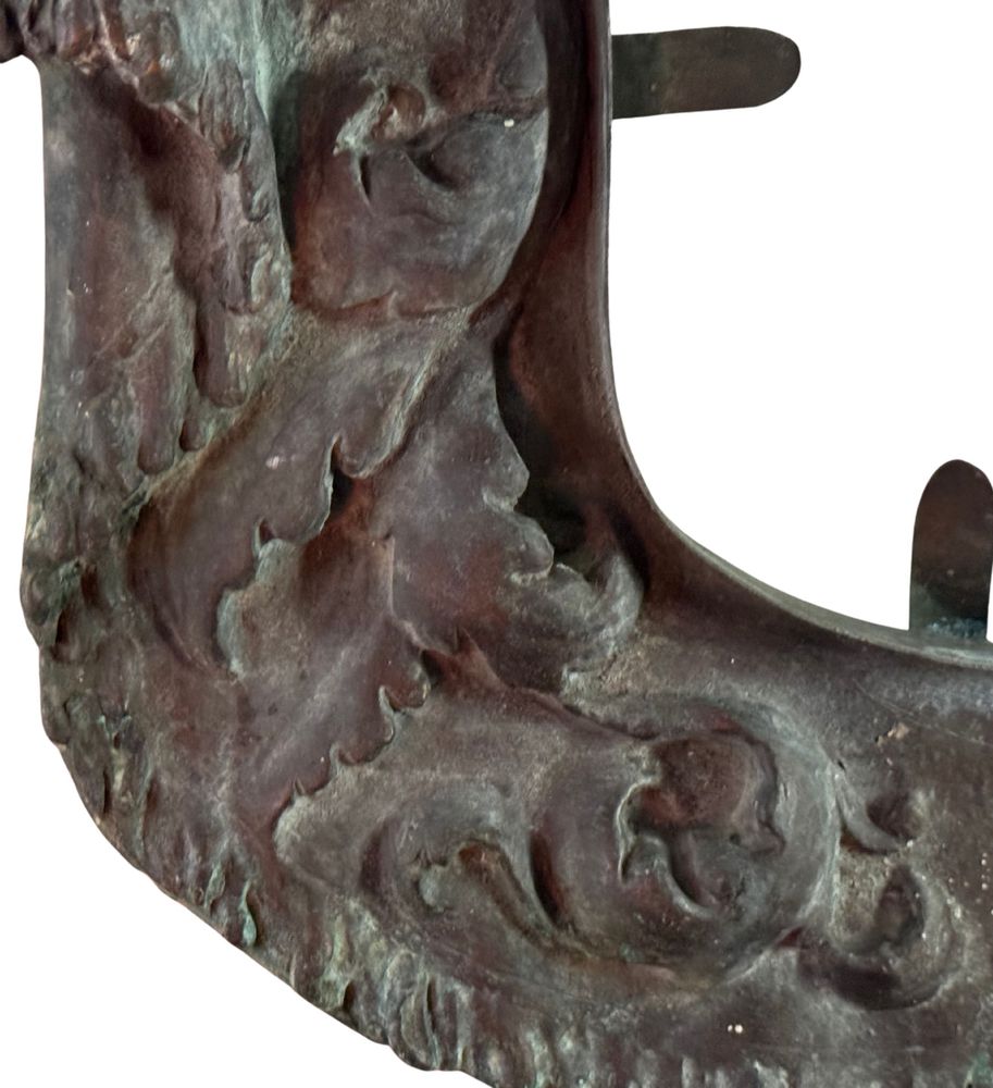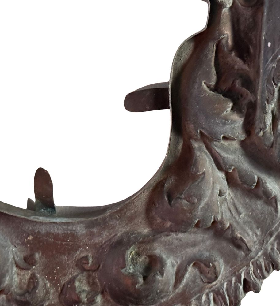 Scudo in bronzo a cera persa, periodo XIX/XX secolo. Dimensioni: 30x50 cm. Buone condizioni. Patina originale.