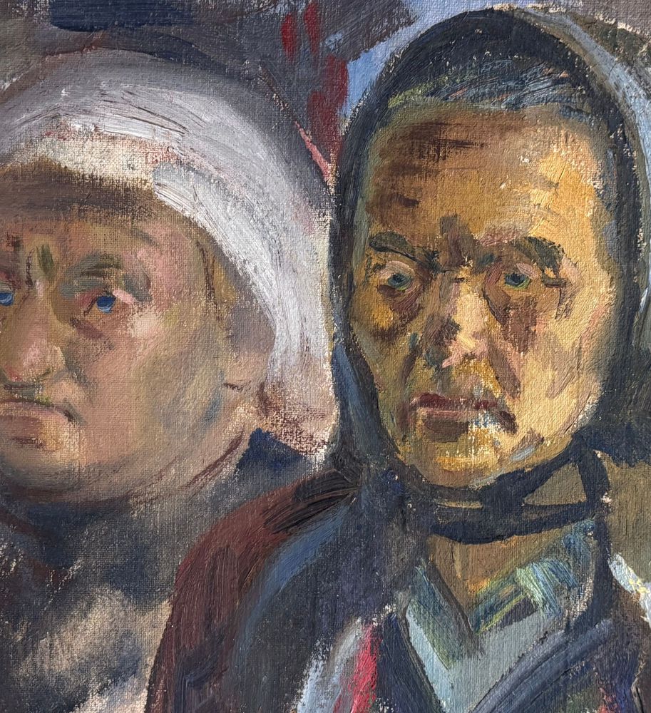 Dipinto olio su tela, periodo XX secolo, scuola Italiana, raffigurante Due personaggi femminili in abito popolano. Dimensioni compreso cornice: 81x92 cm. Dimensioni interno cornice: 63x75 cm. Artista anonimo. Opera in buone condizioni con lievi segni di vissuto come da foto allegate.