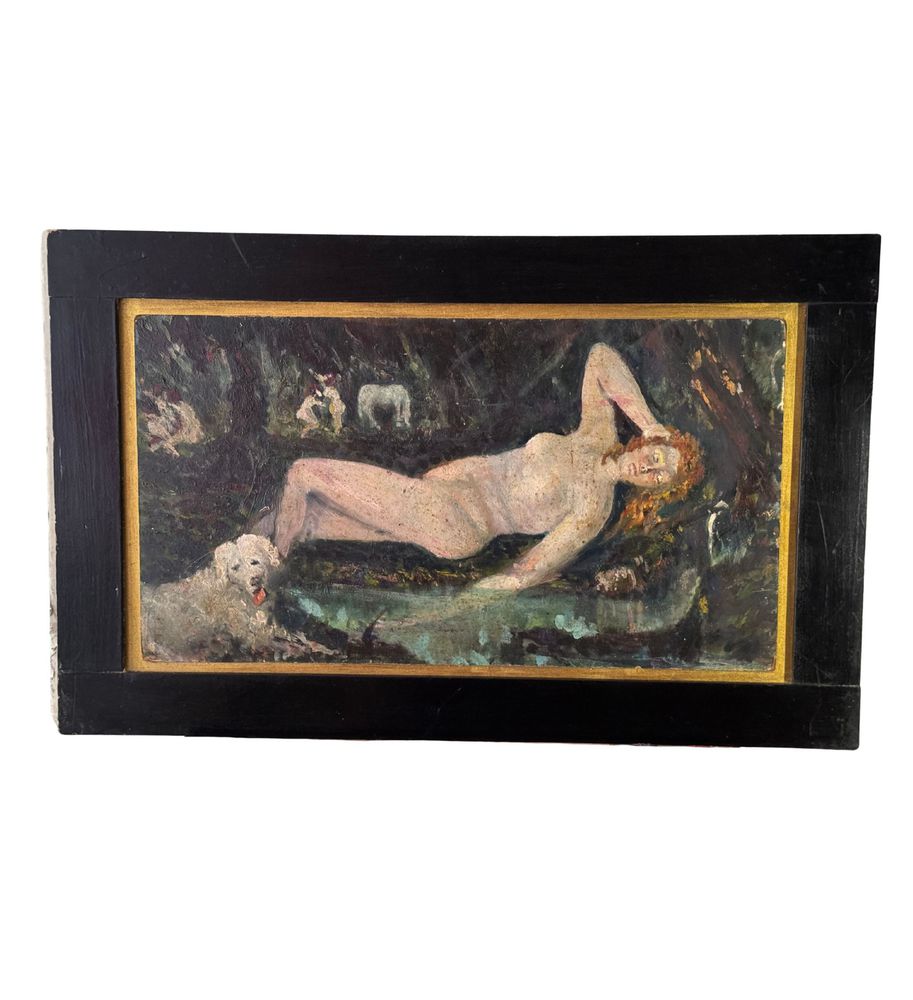 Dipinto olio su pannello , periodo XX secolo, scuola Italiana raffigurante Donna a riposo. Dimensioni compreso cornice: 68x43 cm. Dimensioni interno cornice: 54x30 cm. Artista anonimo. Opera in buone condizioni con lievi segni di vissuto come da foto allegate.