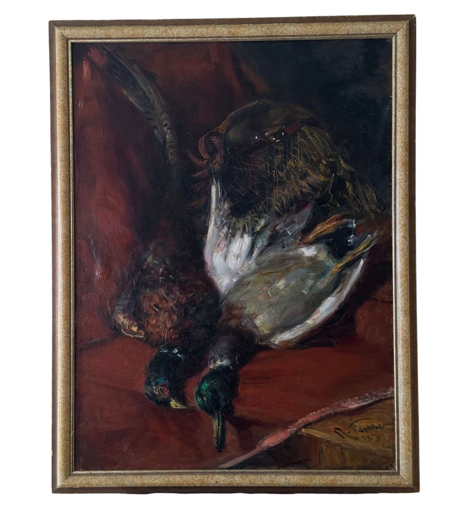 Dipinto olio su tela, periodo XX secolo, scuola Italiana raffigurante Natura morta. Dimensioni compreso cornice: 68x87 cm. Dimensioni interno cornice: 60x80 cm. Firmato in basso a destra da artista non identificato. Opera in buone condizioni.