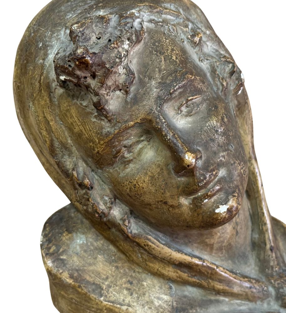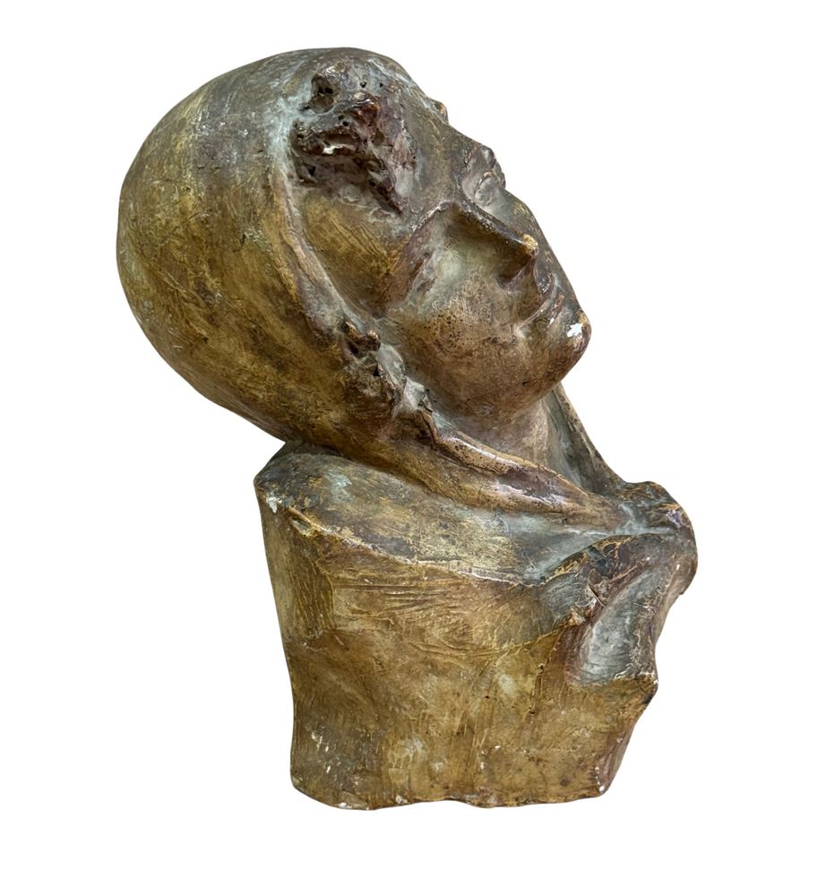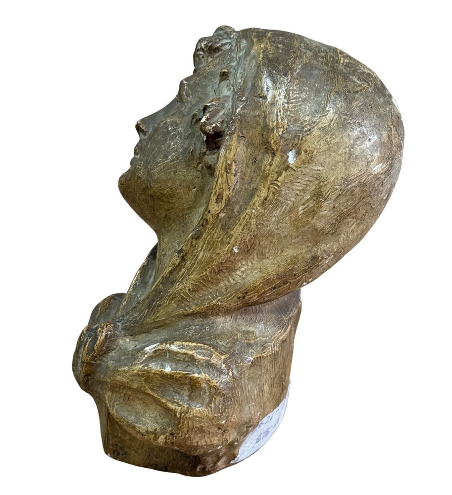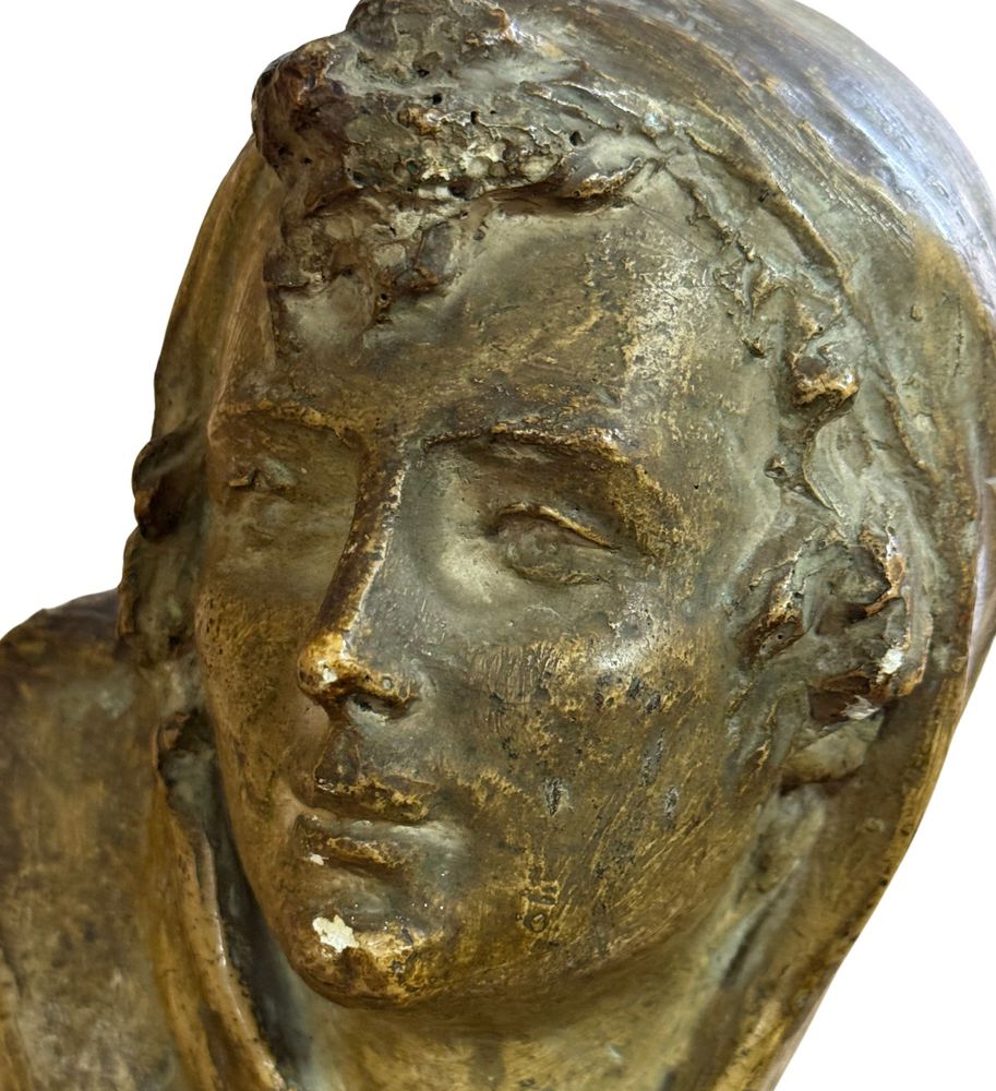 Scultura in scagliola, periodo XIX secolo raffigurante Volto femminile. Dimensioni: h23x15x14 cm. In buone condizioni con lievi segni di vissuto come da foto allegate.