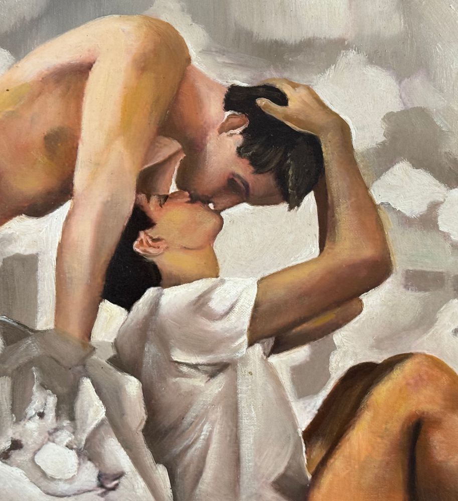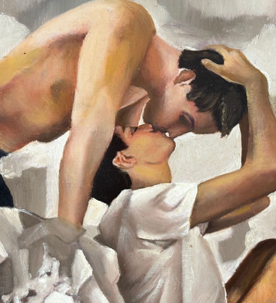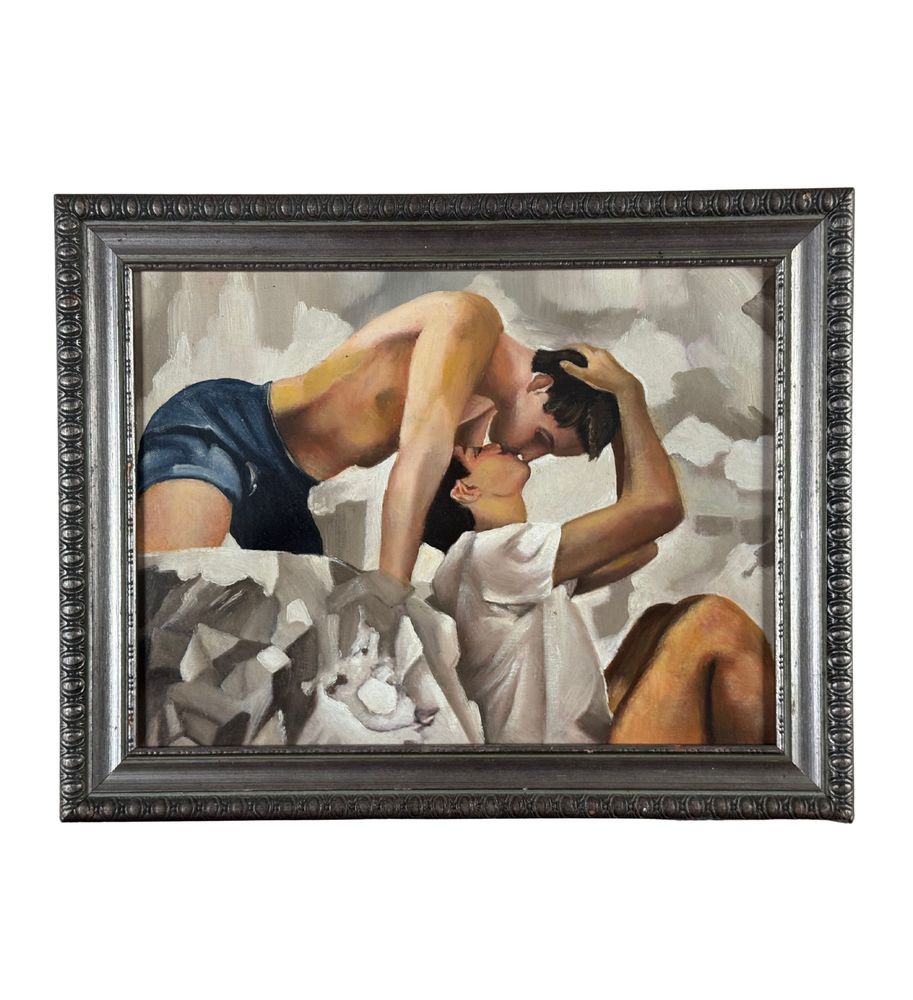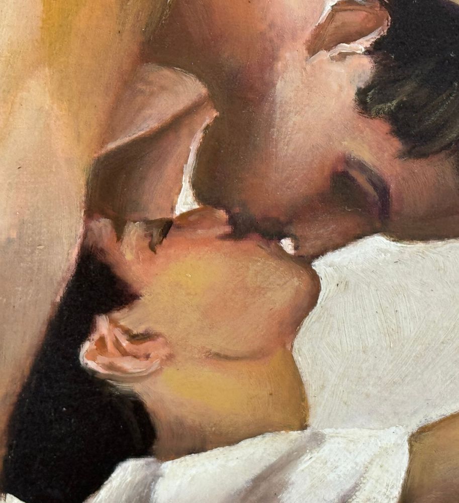 Dipinto olio su cartoncino telato, periodo XX secolo, scuola Italiana raffigurante Due personaggi maschili. Dimensioni compreso cornice: 48x38 cm. Dimensioni interno cornice: 40x30 cm. Artista anonimo. Opera in buone condizioni.