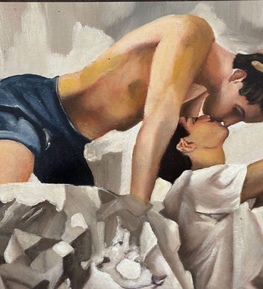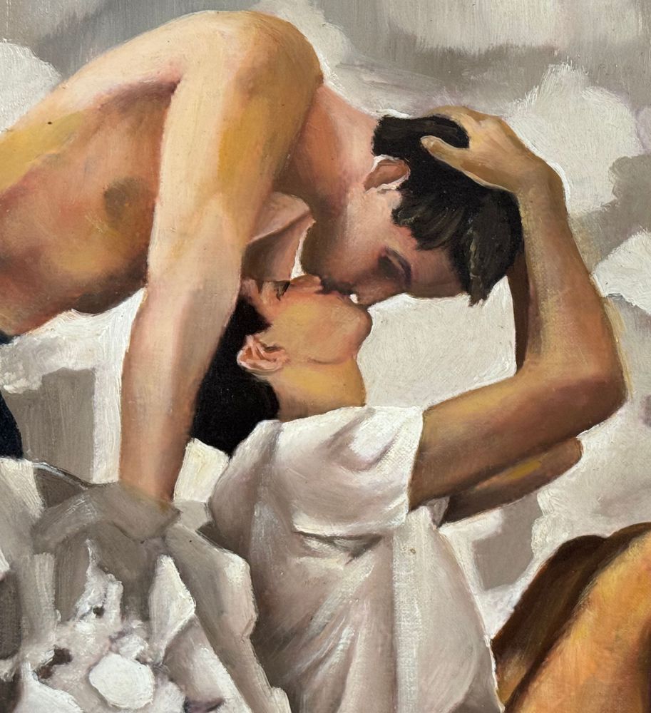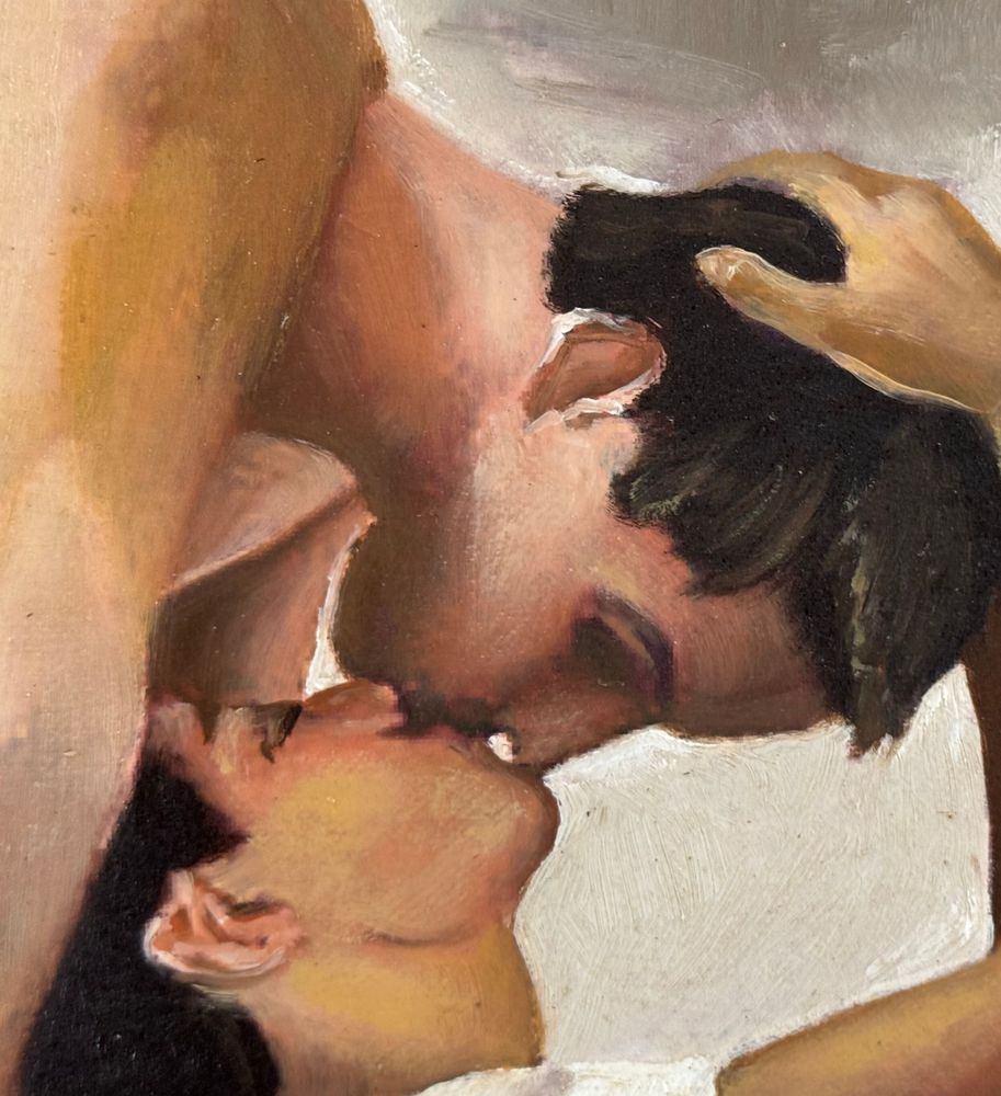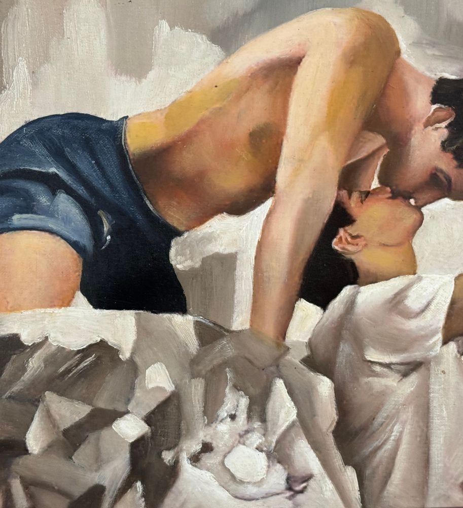 Dipinto olio su cartoncino telato, periodo XX secolo, scuola Italiana raffigurante Due personaggi maschili. Dimensioni compreso cornice: 48x38 cm. Dimensioni interno cornice: 40x30 cm. Artista anonimo. Opera in buone condizioni.