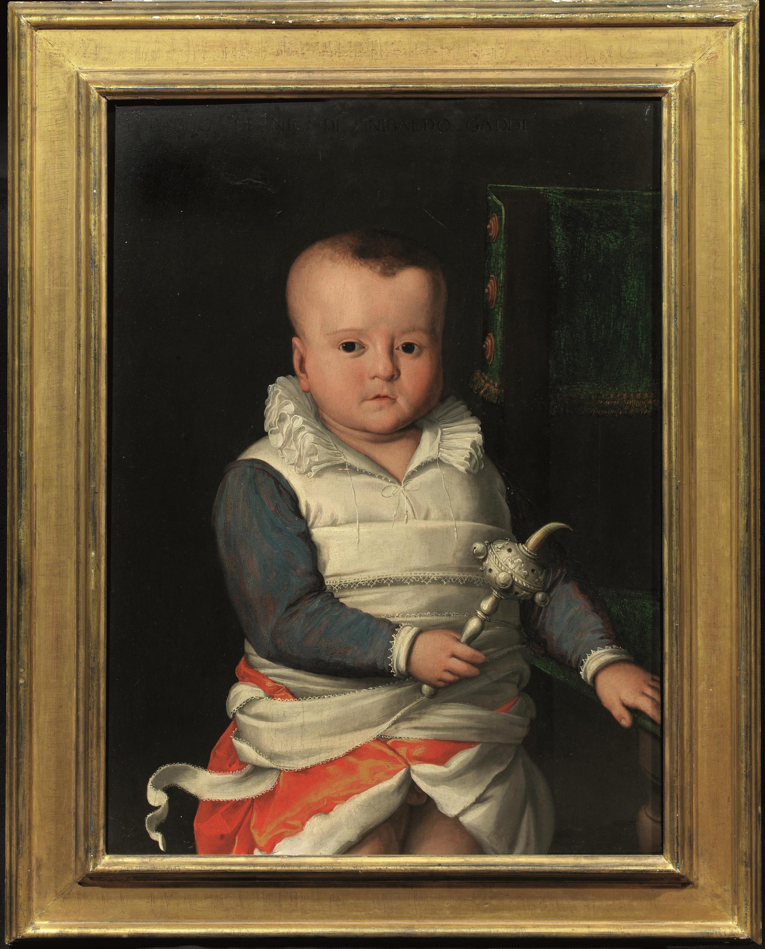 Nonostante la tenera età l’effigiato viene rappresentato dall’artista con una sorta di atteggiamento regale ravvisabile nel modo di appoggiarsi alla sedia e per il piglio con cui impugna il prezioso sonaglio, aspetto reso ancora più evidente dall’ambientazione raccolta del dipinto.