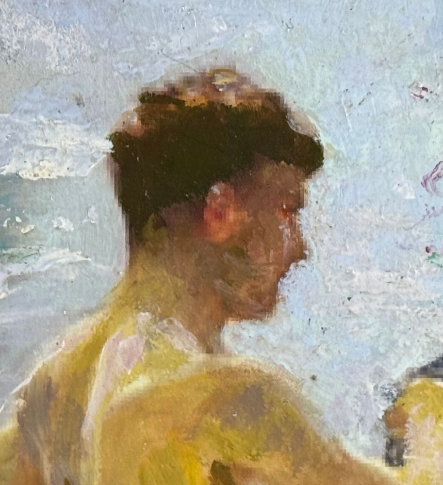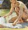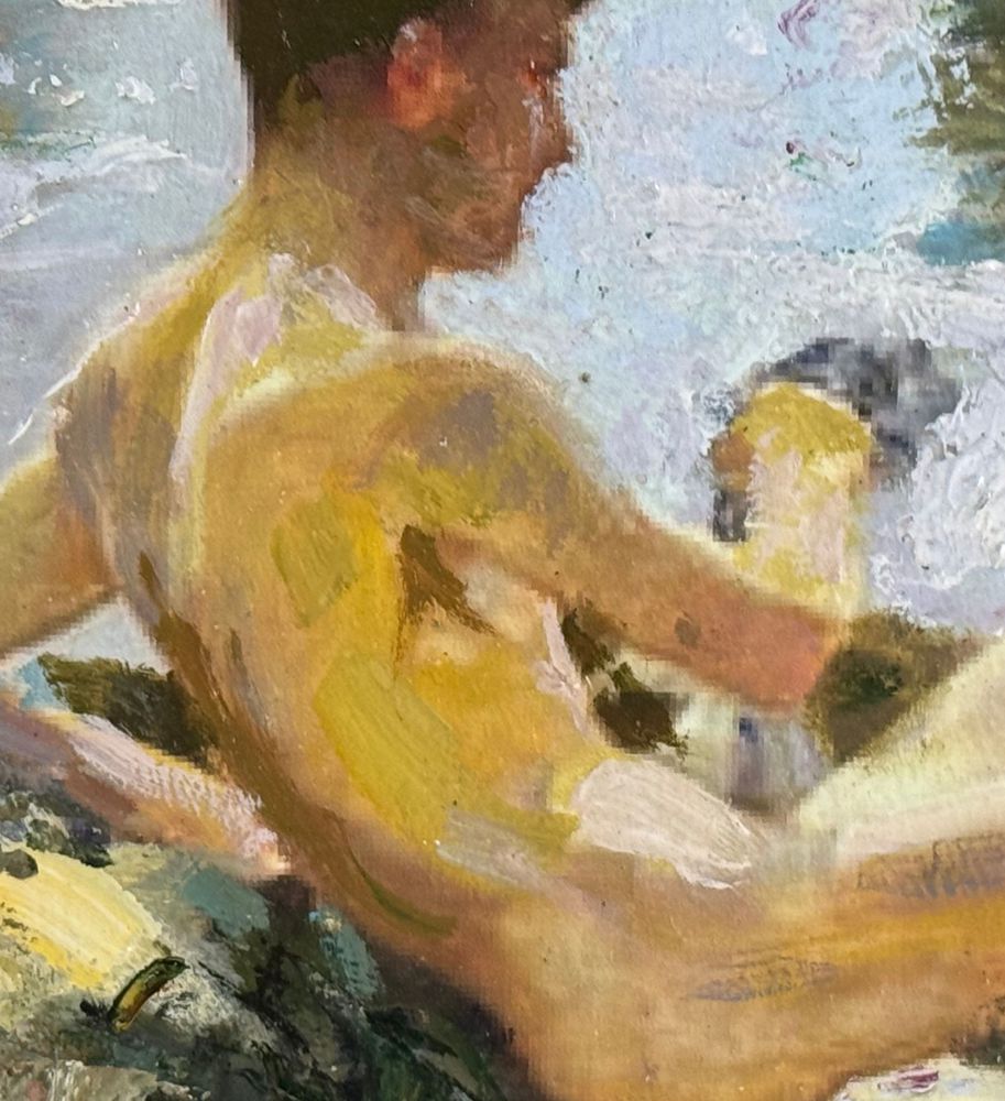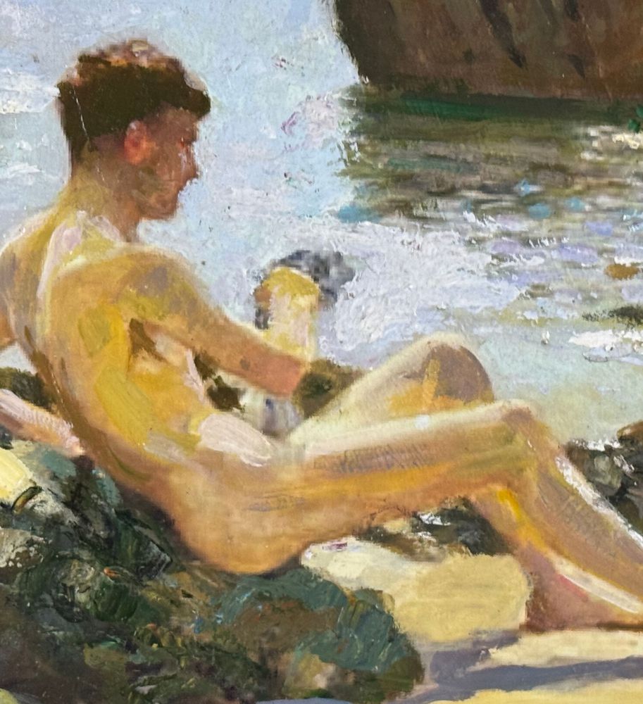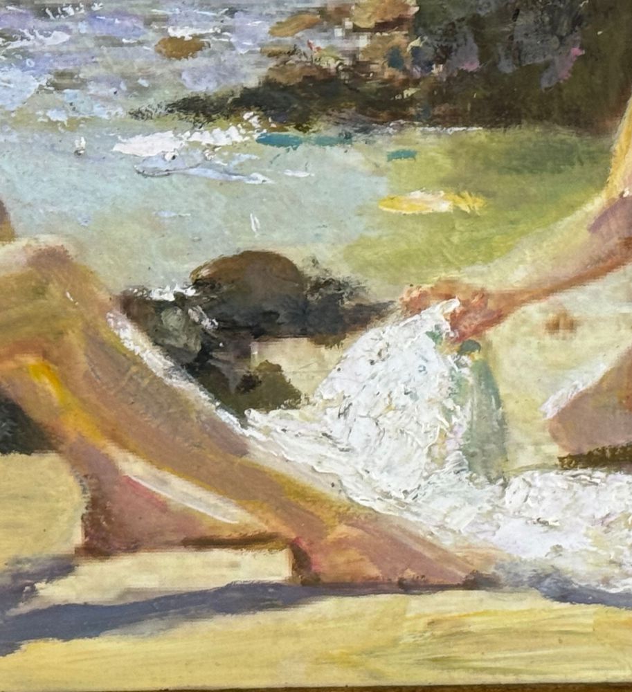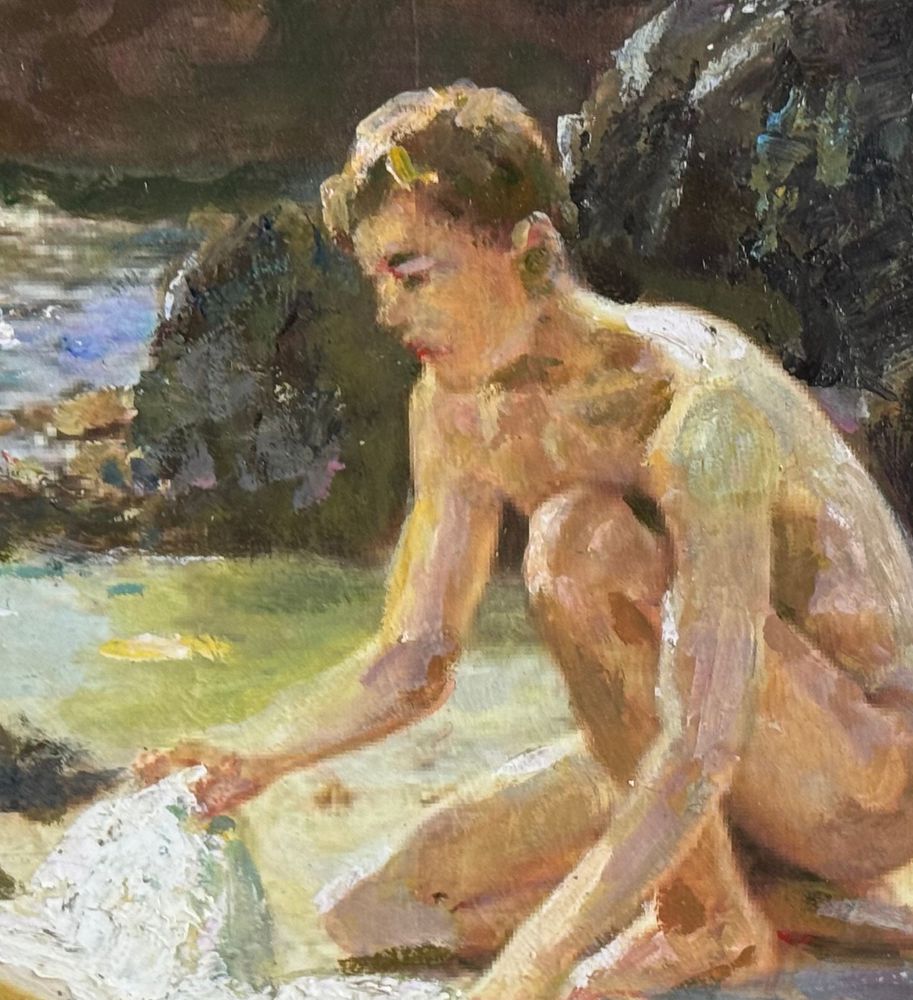 Dipinto olio su pannello, periodo XX secolo, scuola Italiana raffigurante Giovani bagnanti. Dimensioni compreso cornice: 52x37 cm. Dimensioni interno cornice: 40x25 cm. Artista anonimo. Opera in buone condizioni.