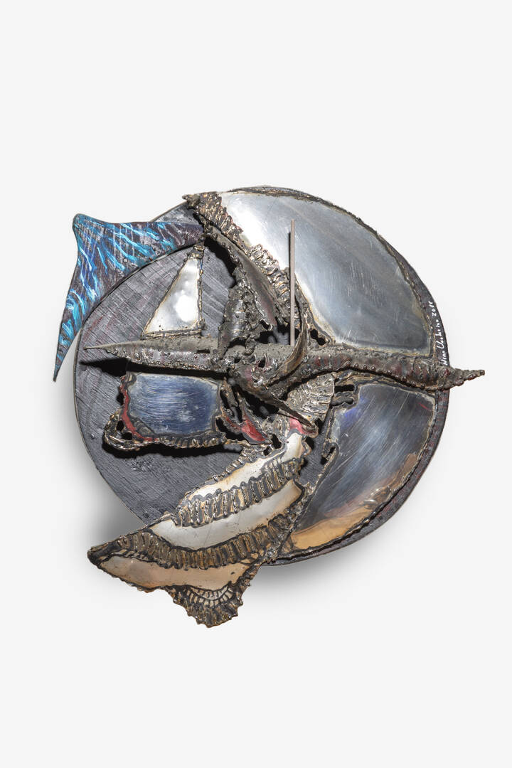 Diam cm 50, scultura in acciaio inox e legno