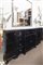 Credenza anni '40 con ribaltina che si apre a compasso. Composta da due elementi laterali separati e un elemento centrale in legno laccato e piano in vetro colorato e particolari in acciaio.