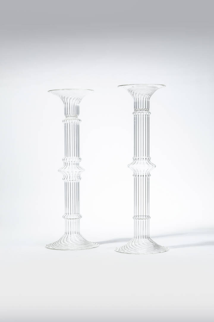 COPPIA DI CANDELABRI<BR>Coppia di candelabri in cristallo