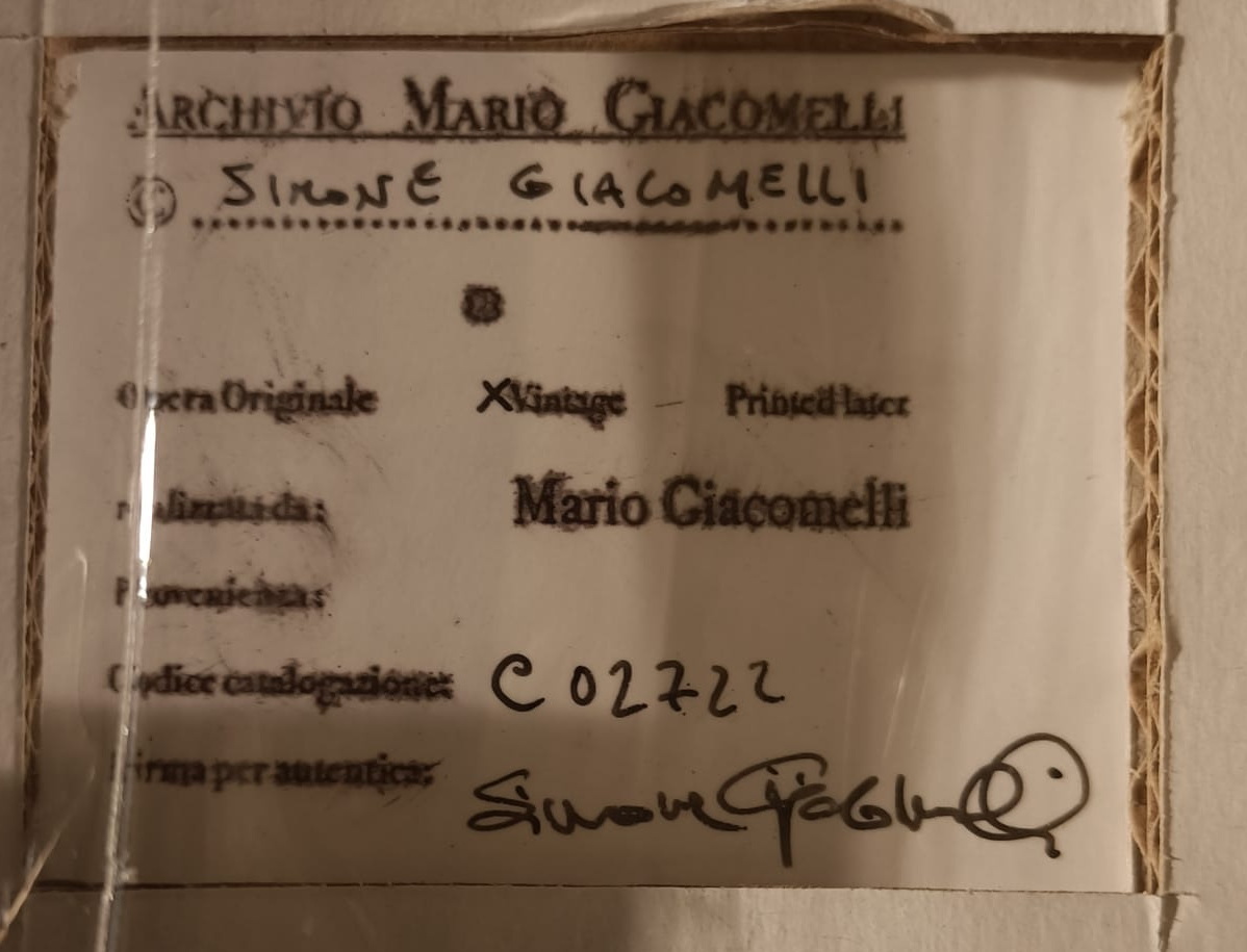 Al retro: etichetta dell'Archivio dell'autore a cura del figlio con tutte le caratteristiche dell'opera.