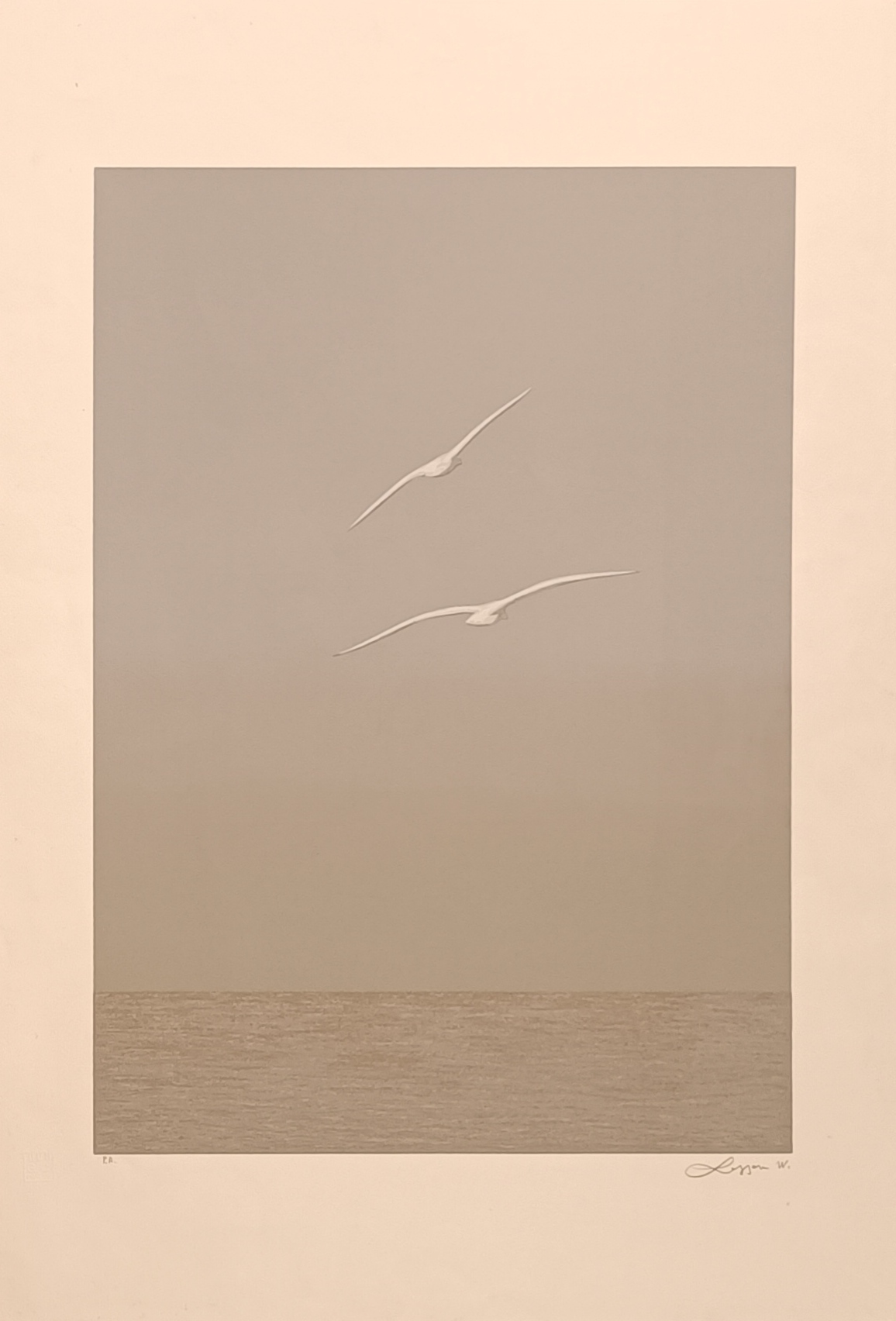 LAZZARO WALTER Roma (Roma) 1914 Due gabbiani Serigrafia su carta es PA...