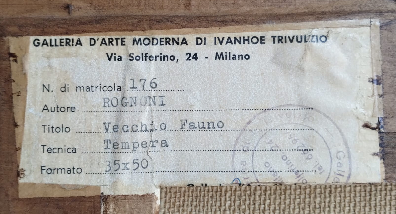 Al retro firma e anno, etichetta della Ivanoe Trivulzio, Via Solferino Milano.