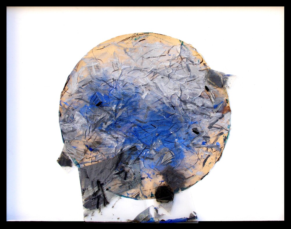 Senza titolo, 1983, tecnica mista e collage di piombo e vetro su cartoncino applicato su tavola, cm 80x100