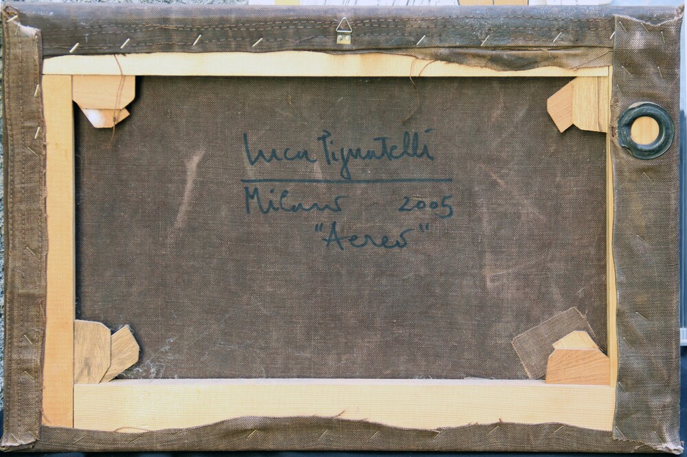 Firma, luogo, data, titolo "Luca Pignatelli, Milano, 2005, Aereo" (al retro)