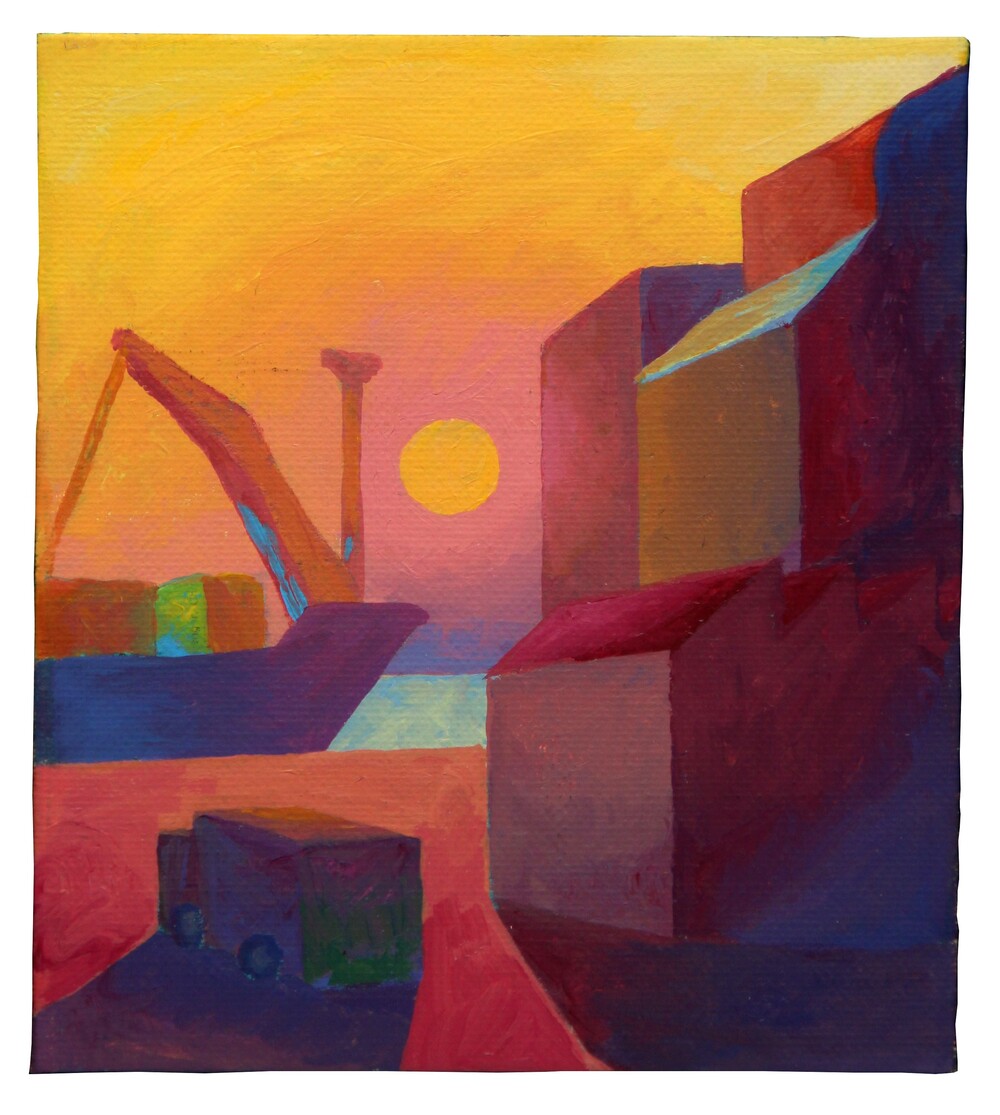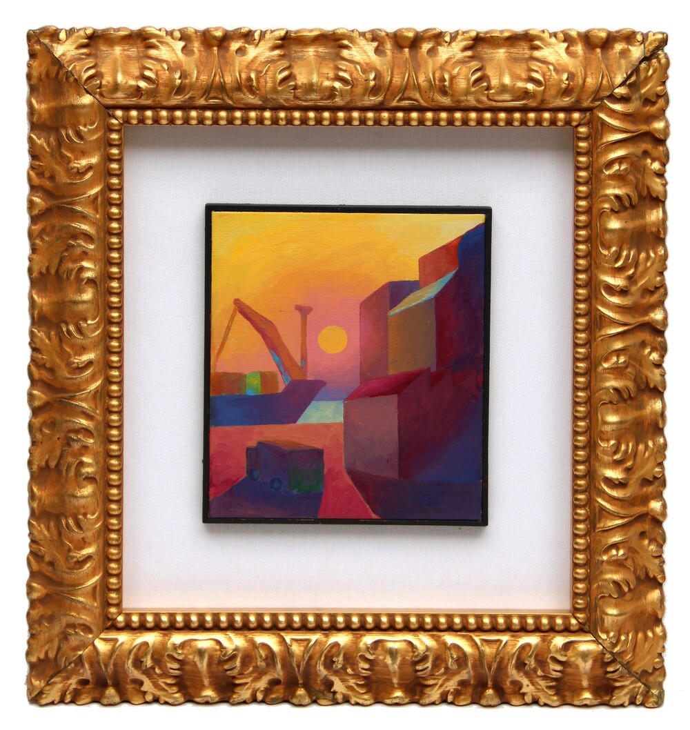 Il porto, 1988, olio su carta intelata, cm 22x19,5
