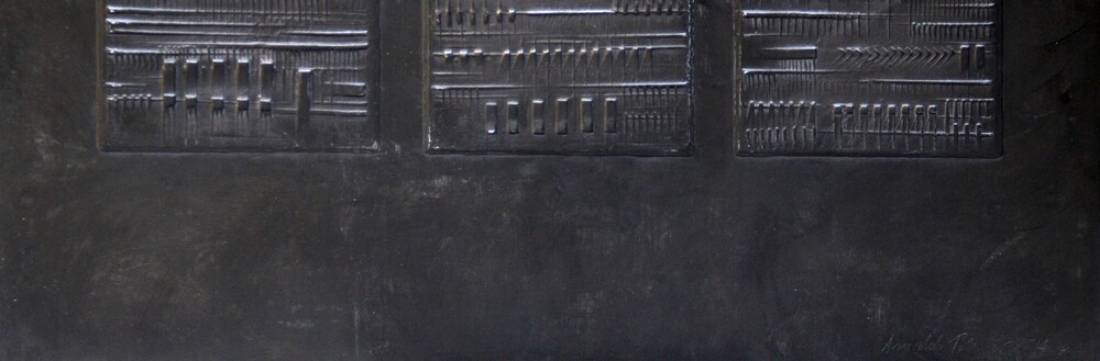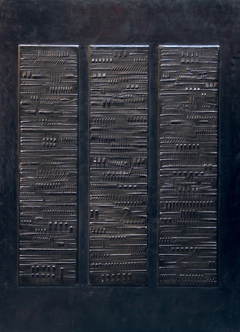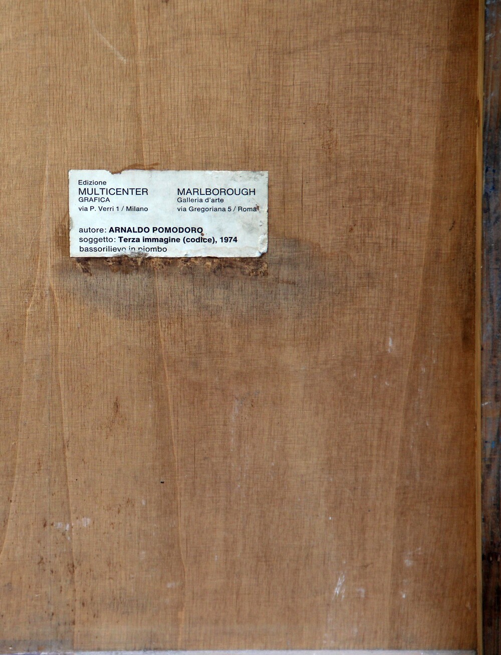 Terza immagine (codice), 1974, piombo e legno, cm 100x70x5