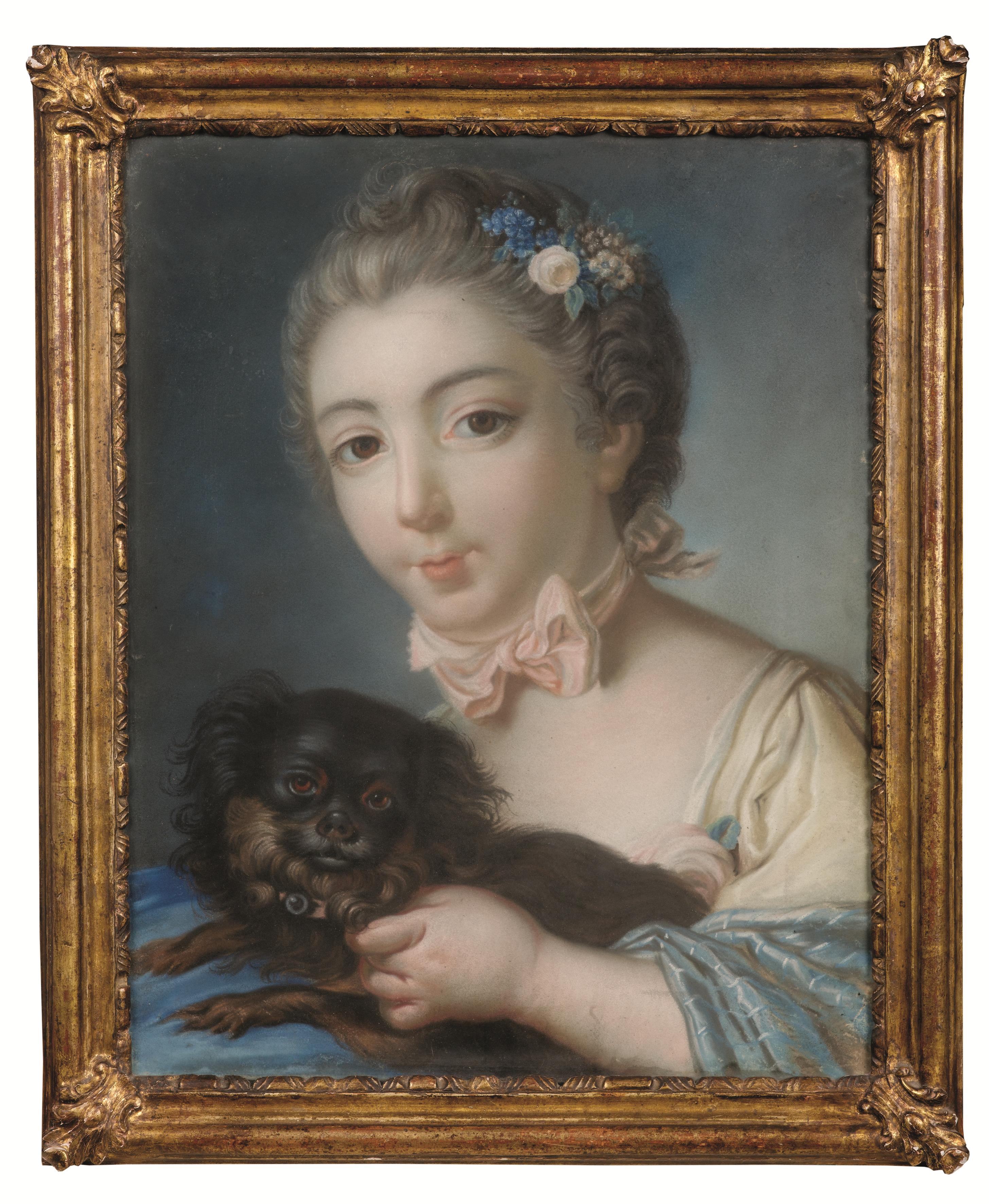 Scuola veneta, sec. XVIIIRITRATTO DI GIOVINETTA CON CAGNOLINOpastello su...
