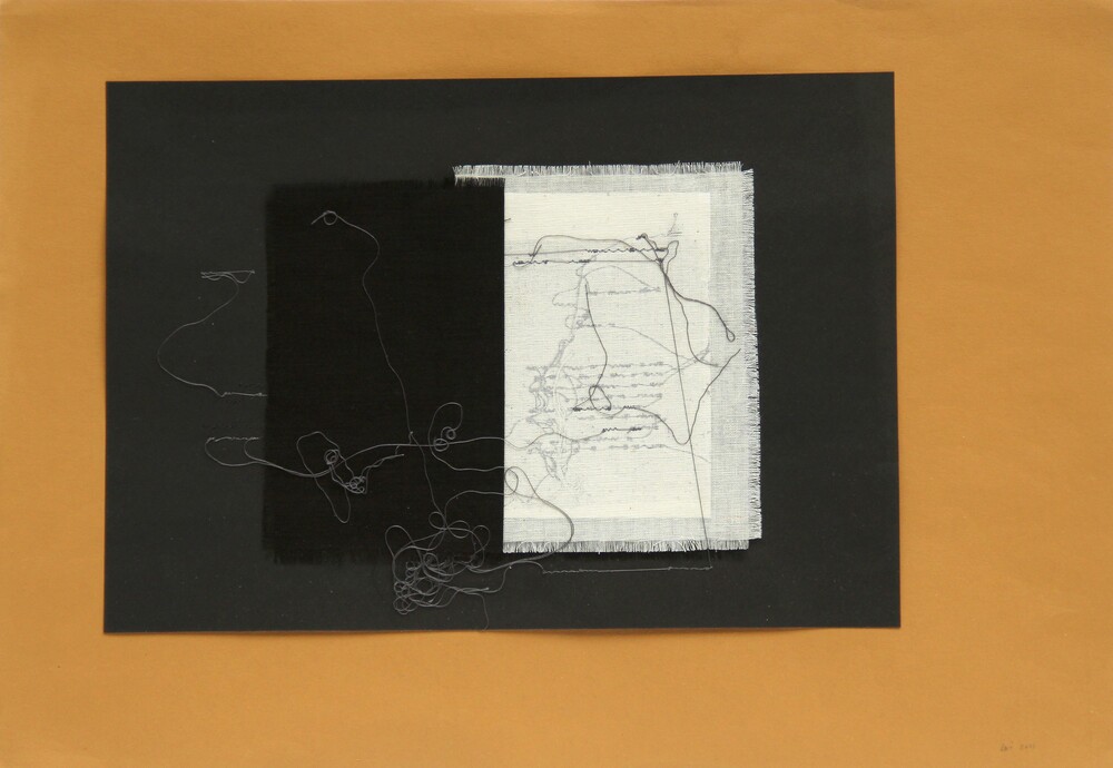 Senza titolo, 2010, filo, inchiostro su stoffa applicata su cartoncino, cm 35x50
