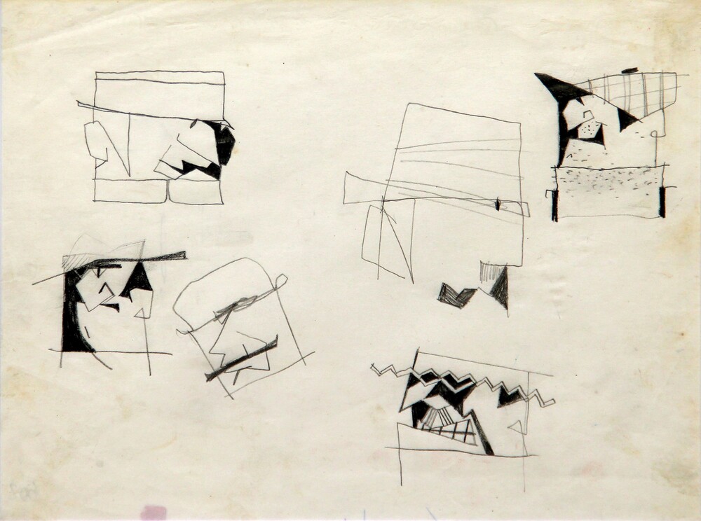 Personaggi (studio), 1961-1963, grafite su carta, cm 22x28