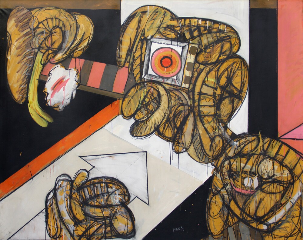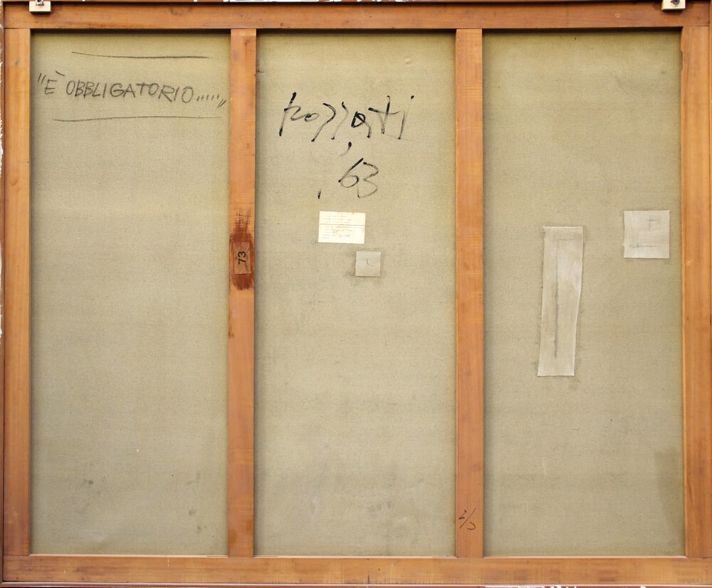È obbligatorio....., 1963, tempera su tela, cm 156x193