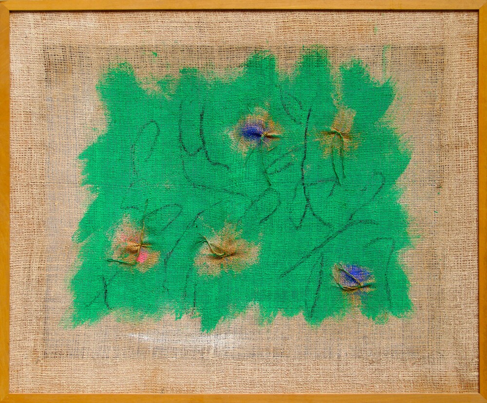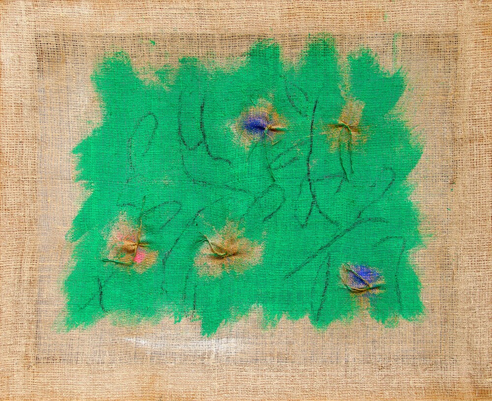 Senza titolo, 2003, terre colorate su tela di juta, cm 90x110