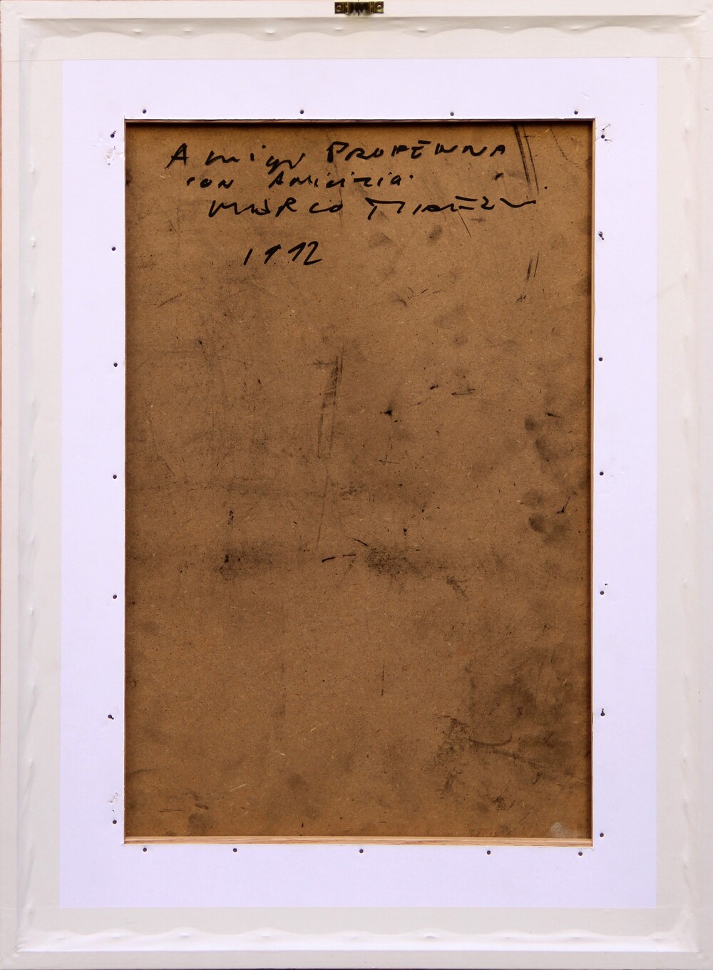 Dedica, firma, data "A Luigi Profenna con amicizia, Marco Tirelli, 1992" (al retro)
