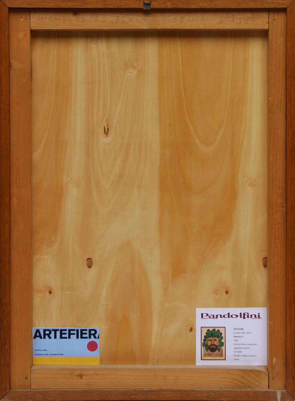 etichetta di Artefiera, Bologna 2026 (al retro)