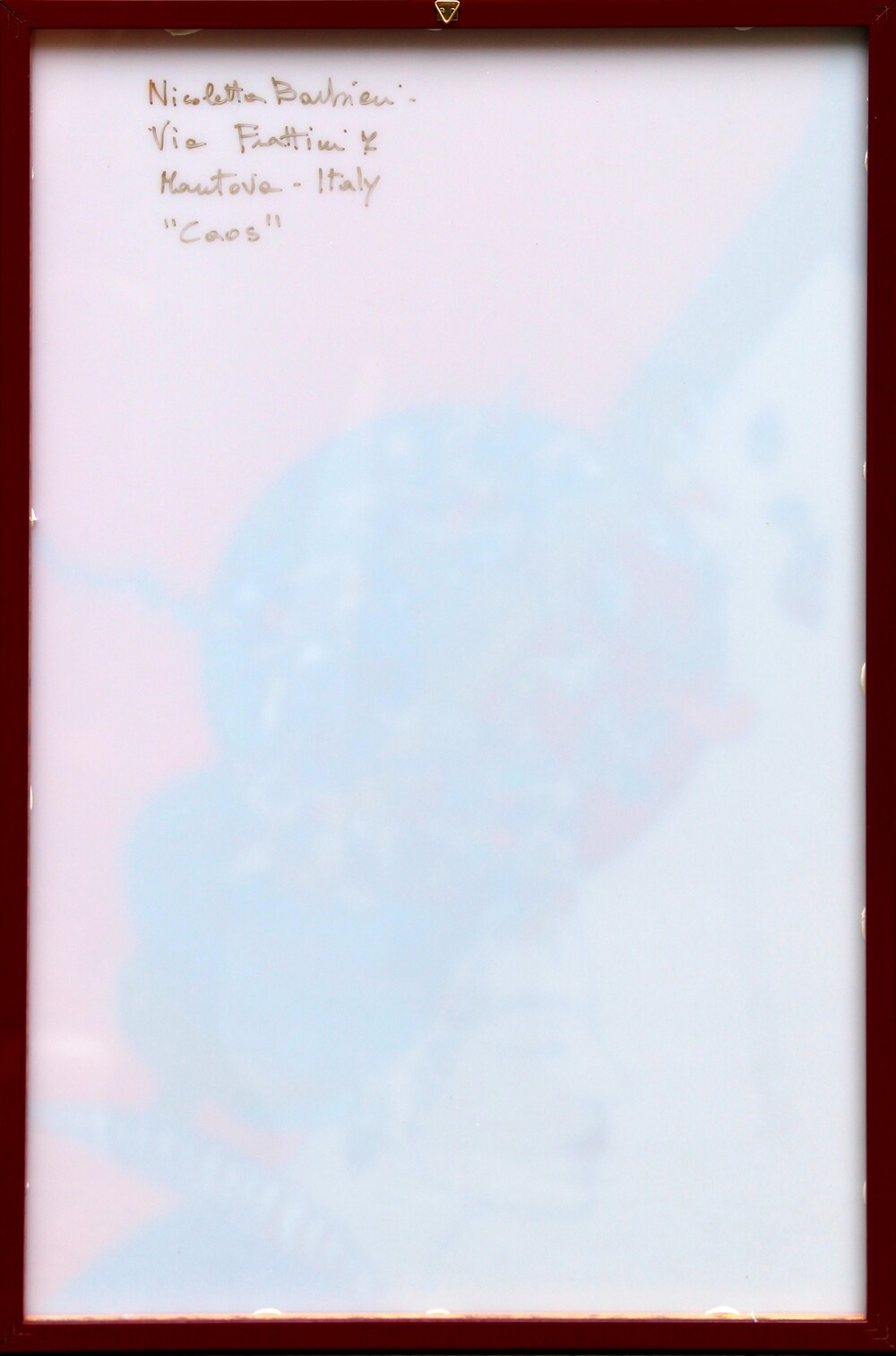 Firma, luogo, titolo "Nicoletta Barbieri, Mantova, Caos" (al retro)